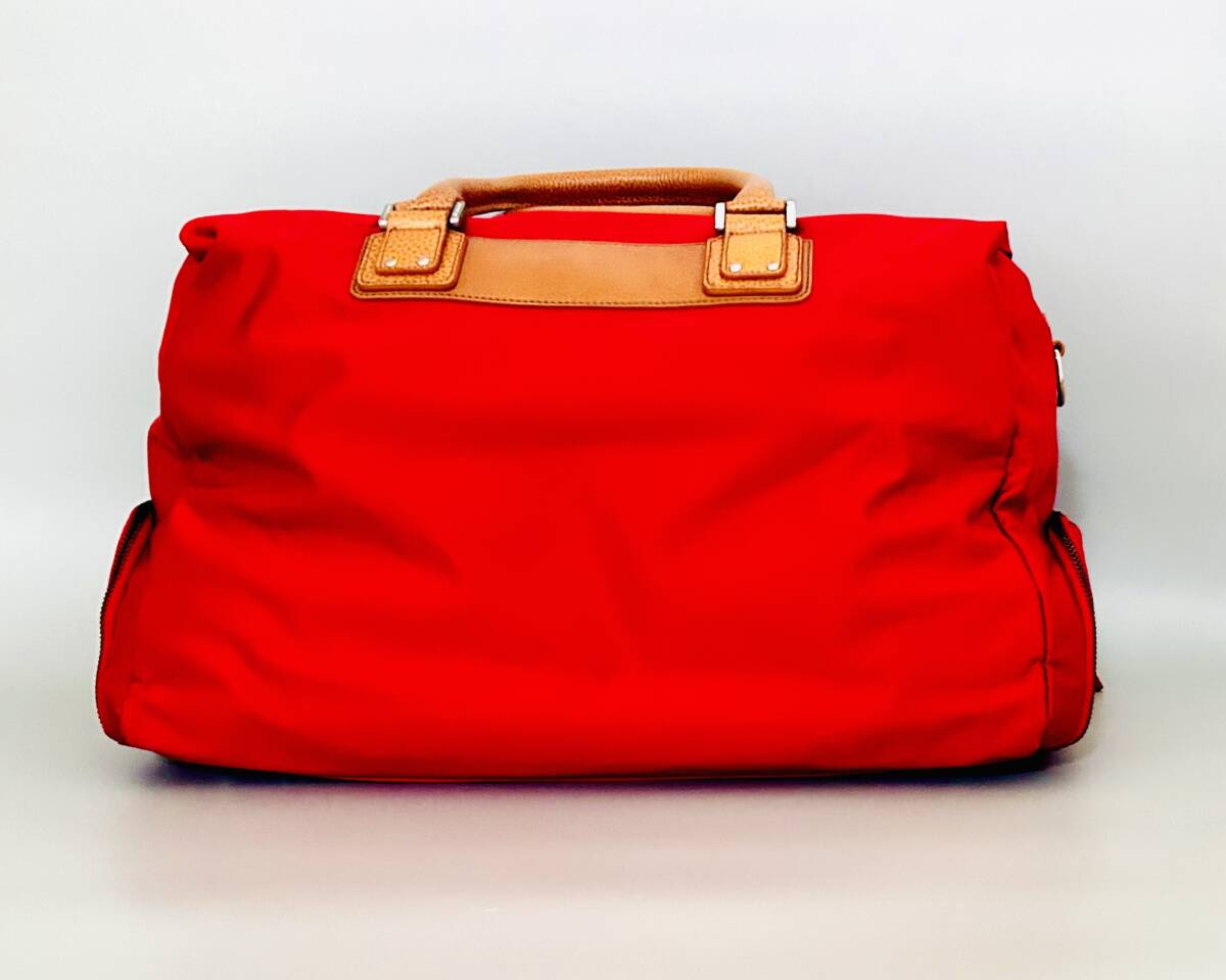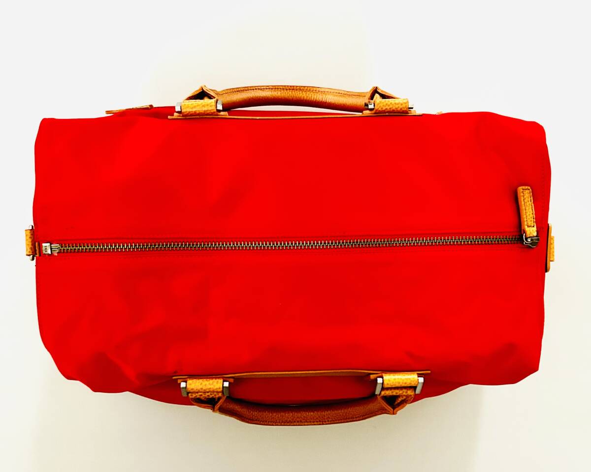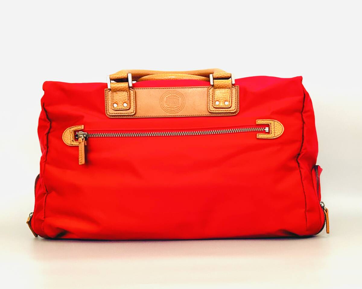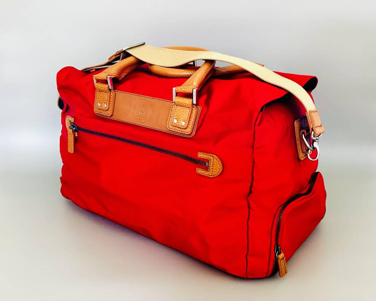 J.PRESS(Jプレス)「ナイロン x レザー ボストンバッグ(COLOR: RED)」となります。