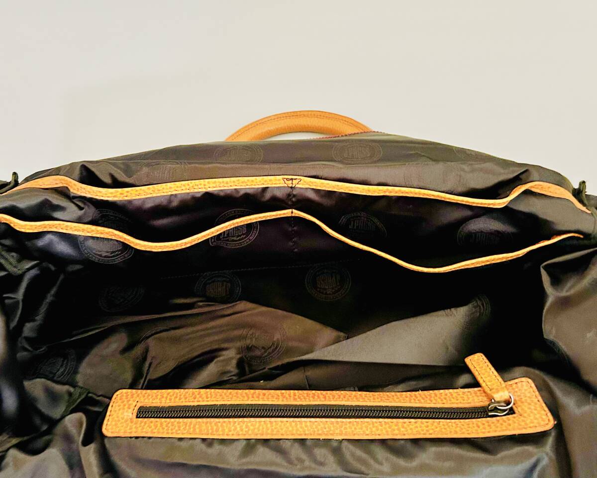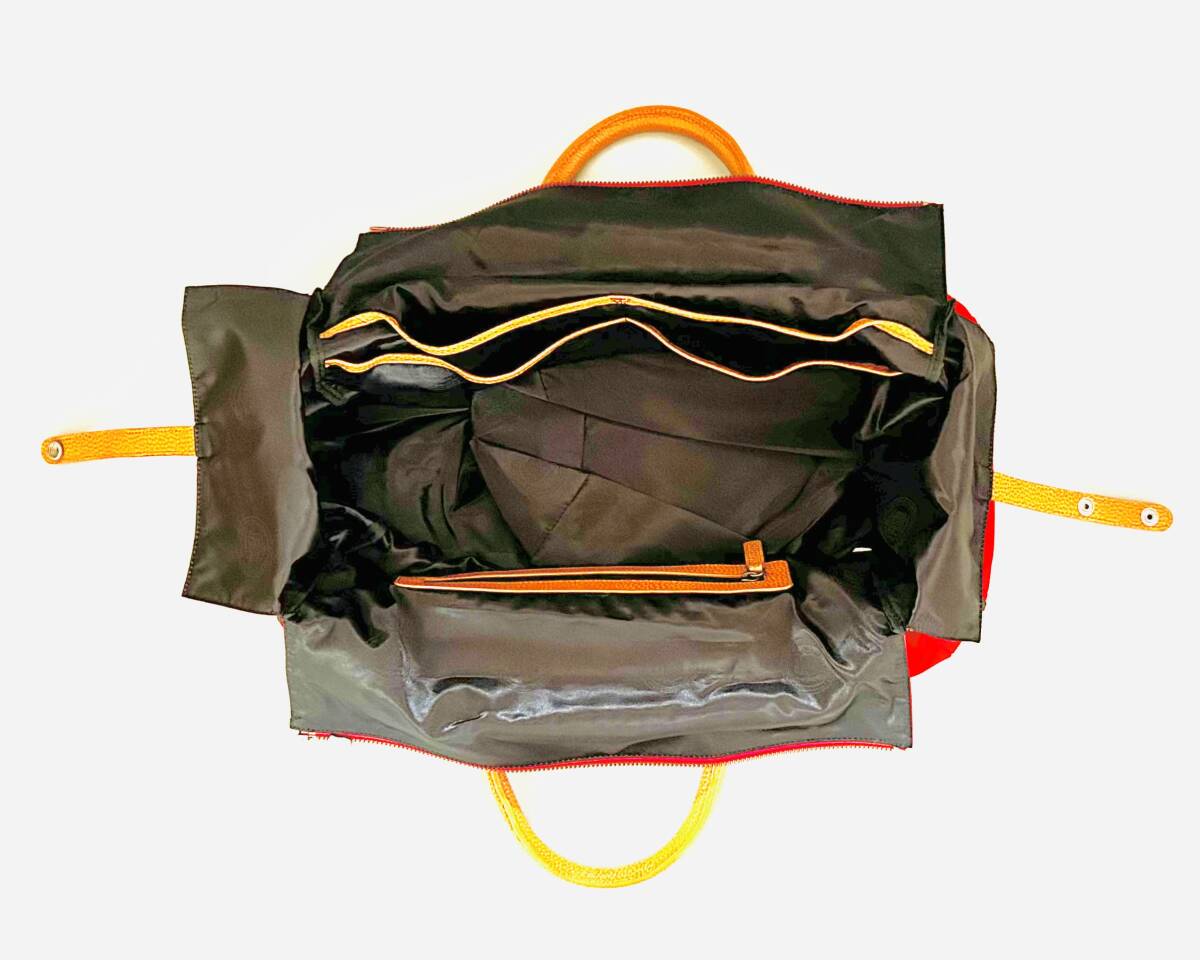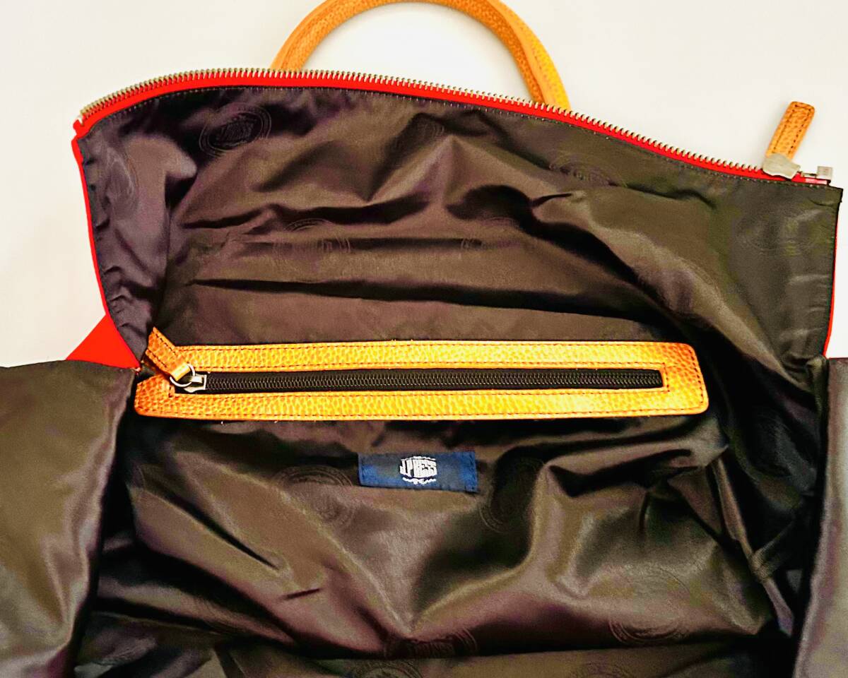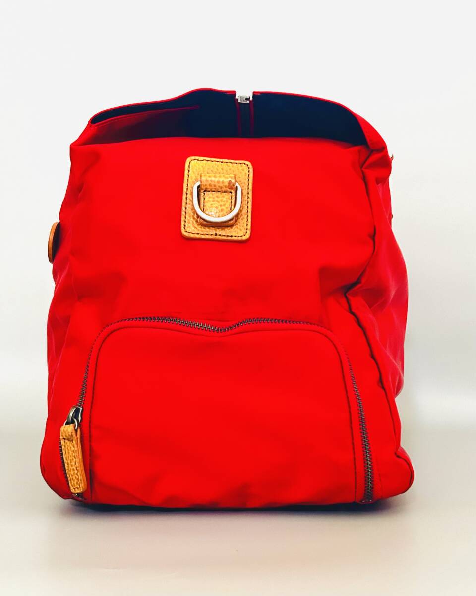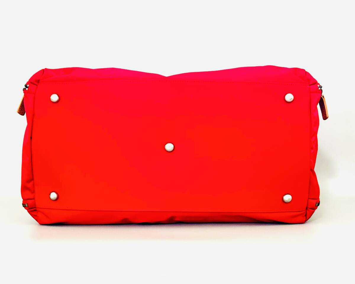 J.PRESS(Jプレス)「ナイロン x レザー ボストンバッグ(COLOR: RED)」となります。