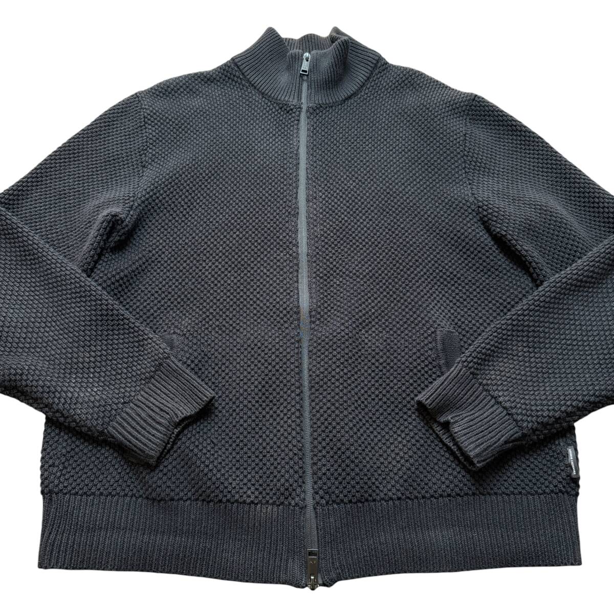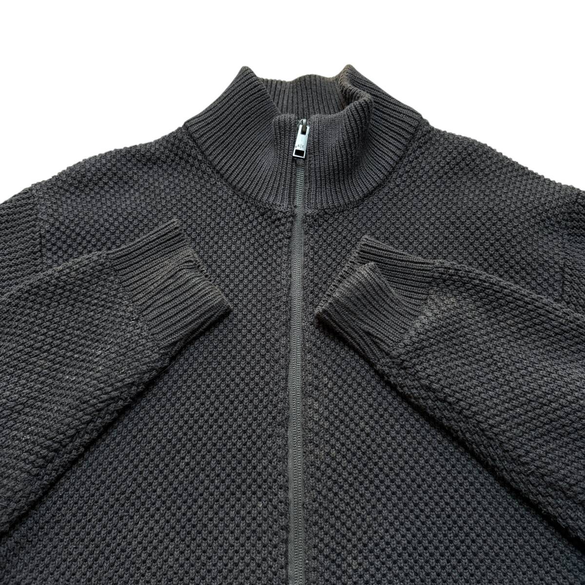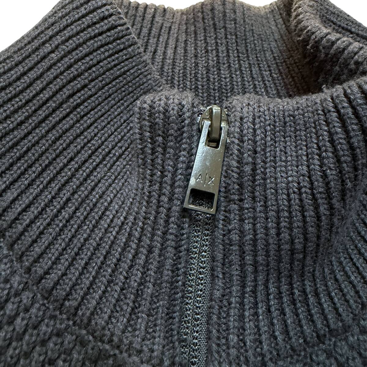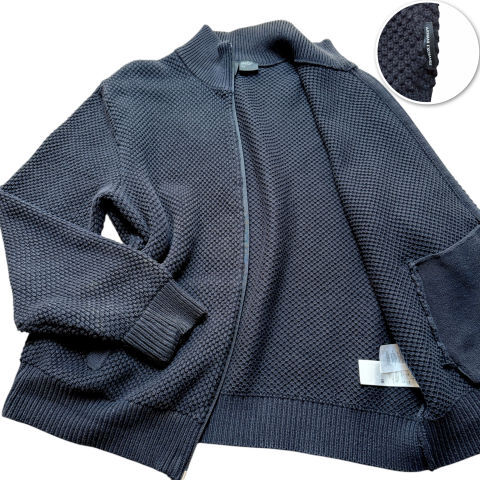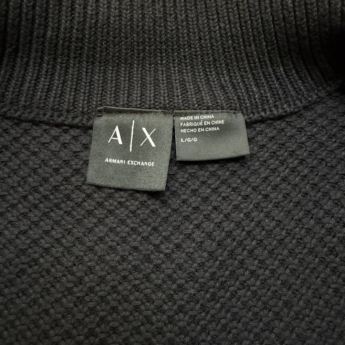 美品●XL相当 ARMANI EXCHANGE 3538 ドライバーズニット ブルゾン ジップアップ アルマーニエクスチェンジ ブラック 黒 ロゴファスナー