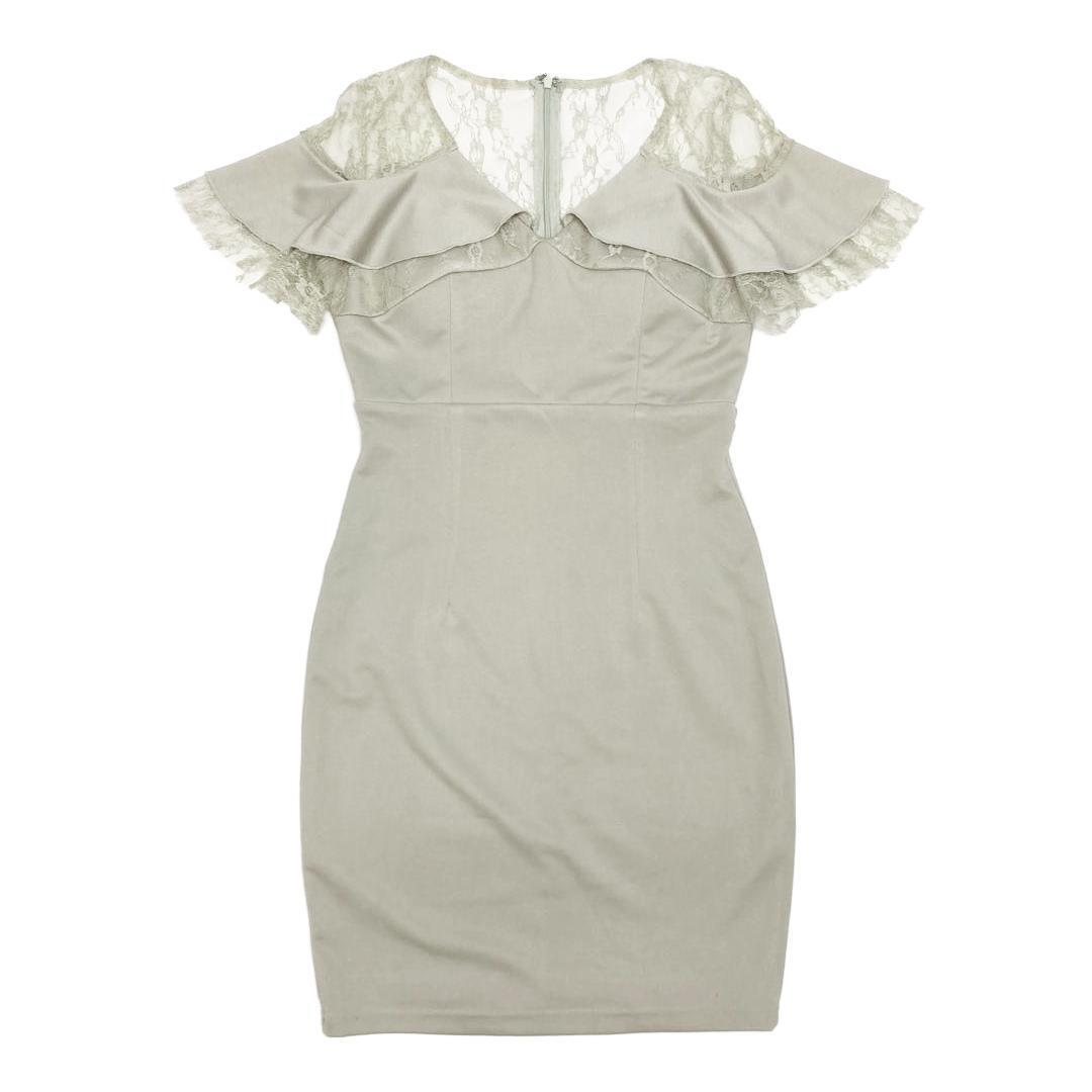DAZZY デイジーストア Vネックフリル袖シアーレースタイトミニドレス