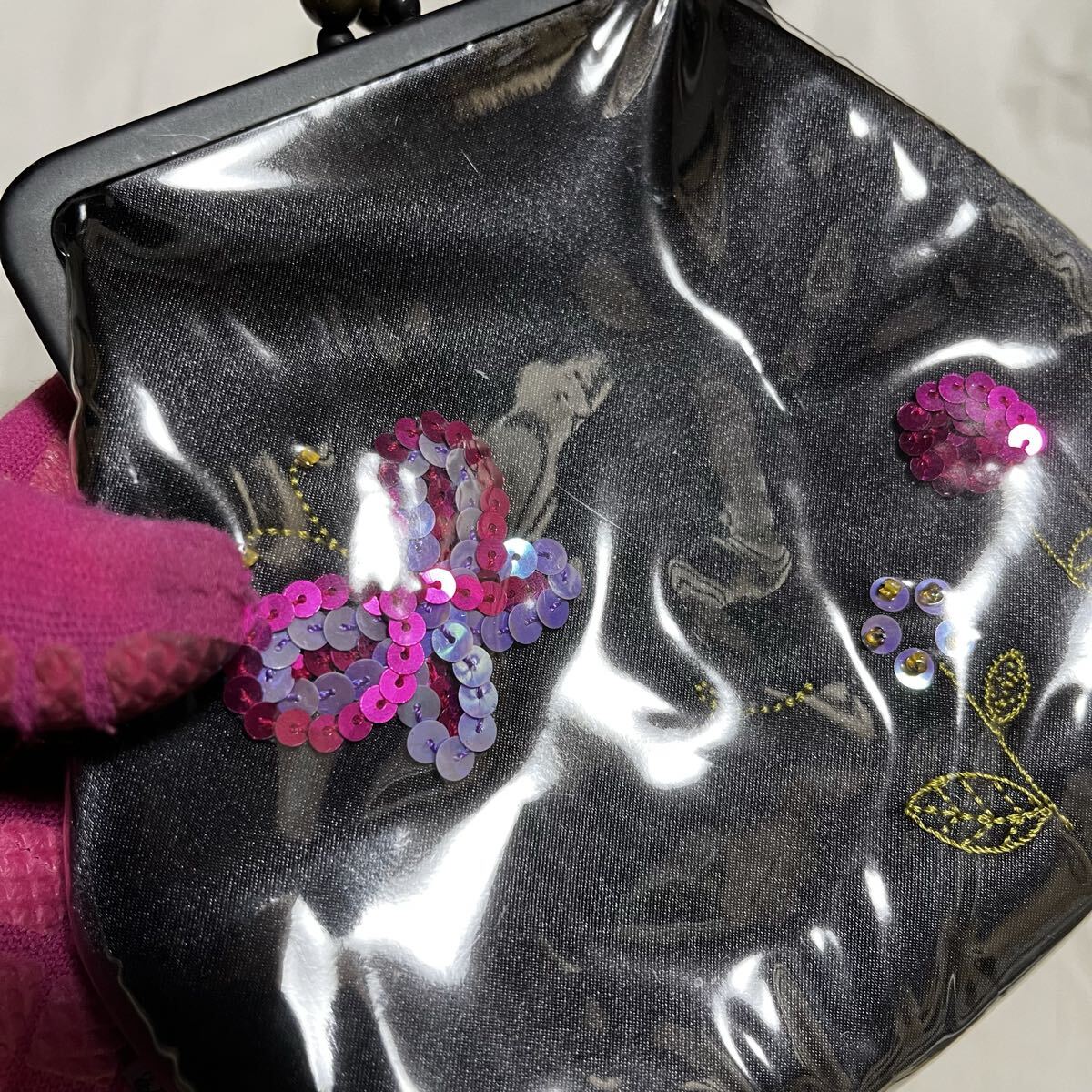 #スパンコール #がま口 #ポーチ #ミニバッグ #アクセサリー #花柄 #蝶