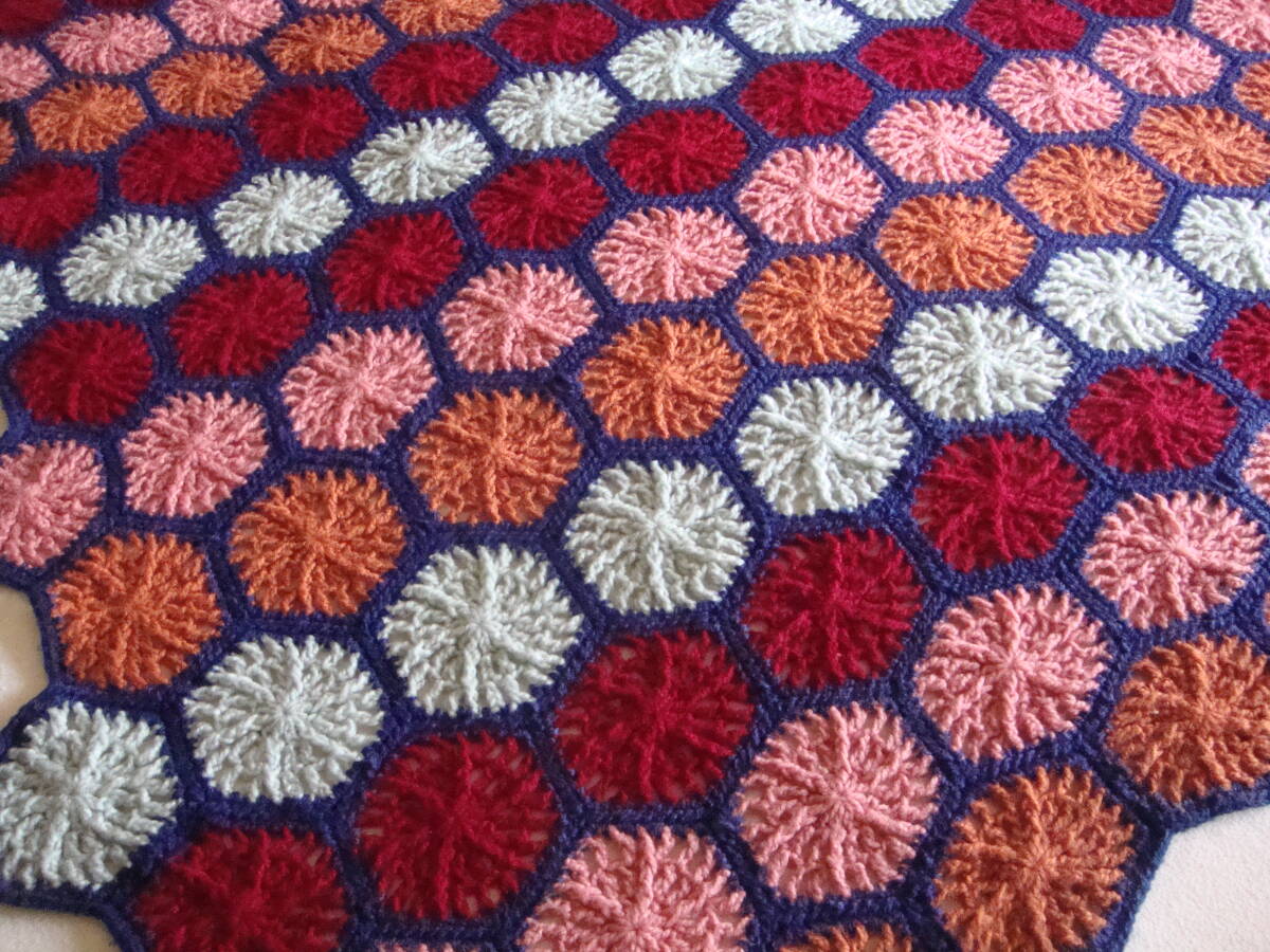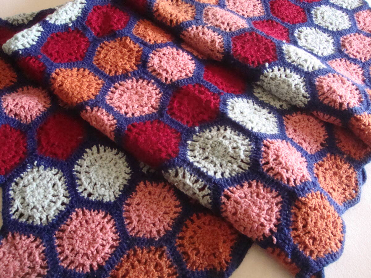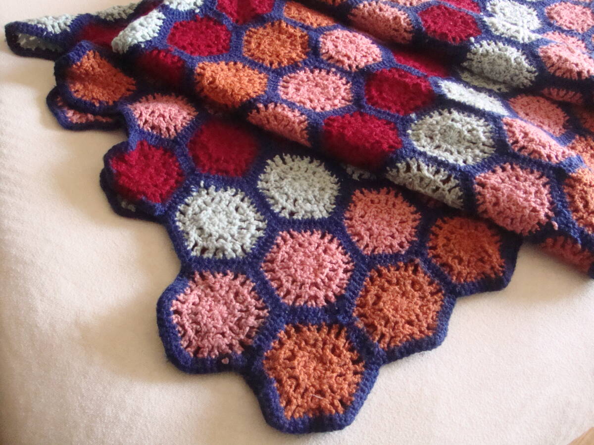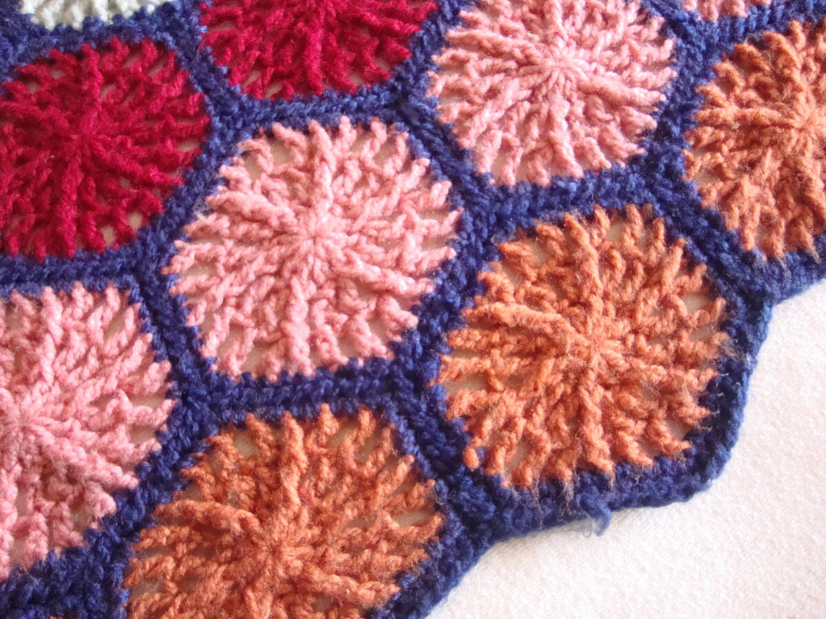 ハンドメイド 手編み レトロ 大判 マルチ カバー ブランケット 184×152cm 六角形 モチーフ こたつカバー ソファー ベッド かぎ針