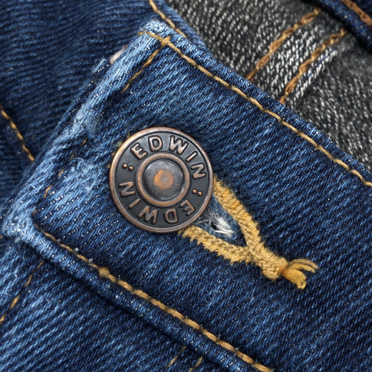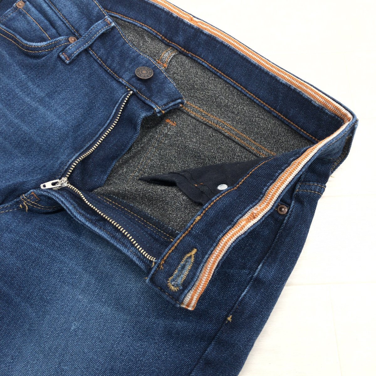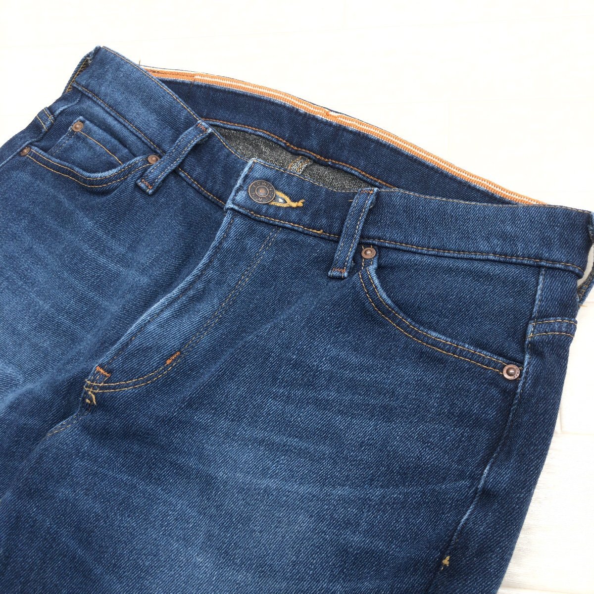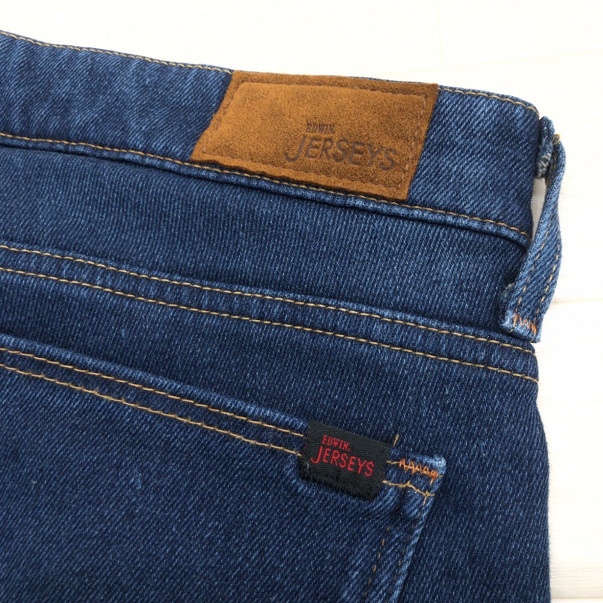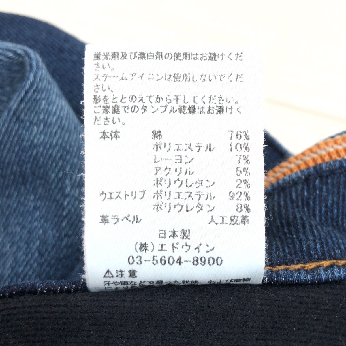 EDWIN エドウィン USED加工 暖ジャージーズ ストレッチ デニム パンツ M w74 インディゴ 日本製 テーパードパンツ 裏起毛 レディース