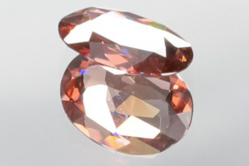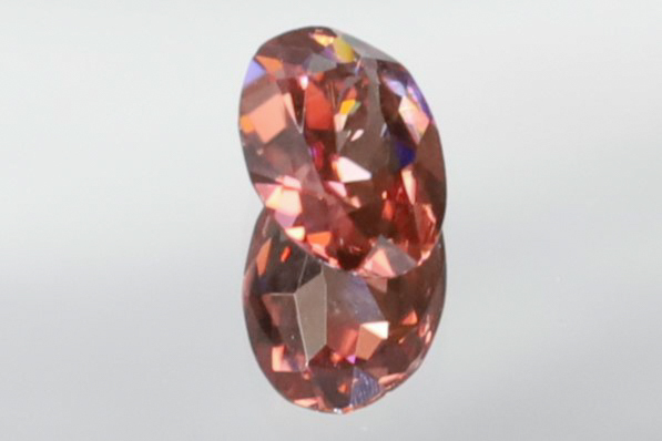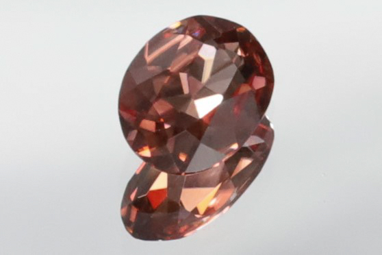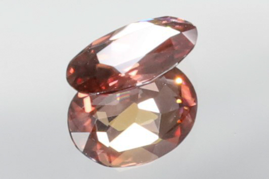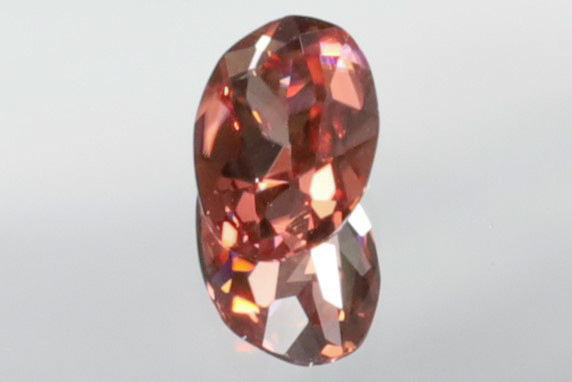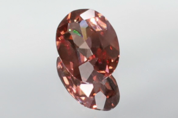 通常光下は2枚目の画像のような感じですが、クリアーブロンズカラーの中、明るいオレンジ調の輝きが見られ、手持ちライトをあてるとメインやその他の画像のような、綺麗なイリディセント・フラッシュをVVSクラリティでお楽しみいただけます。