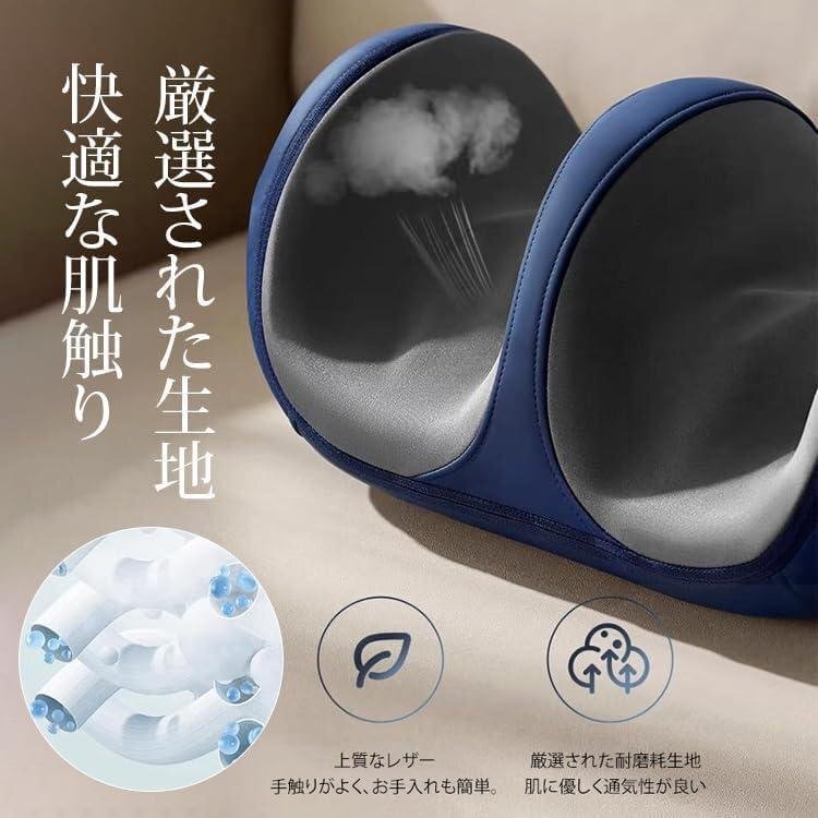 2.多機能設計:ふくらはぎや足裏のマッサージ機能に加え、温湿布機能も搭載。 足を温めて心地よい暖かさを与え、筋肉をリラックスさせます。