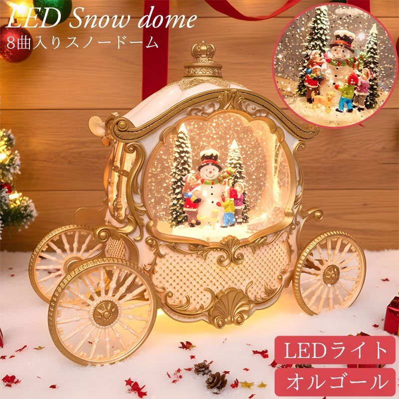 ![]() まるで物語のワンシーンを切り取ったような、幻想的なスノードームキャリッジ。 煌びやかなゴールドの装飾とホワイトのボディが目を引くクラシカルなデザインで、クリスマスシーズンのインテリアにぴったりです。 ドームの中では、サンタクロースと子どもたちがプレゼントを囲み、舞い散る雪に包まれながら温かな光に照らされています。 ライトを灯すと、キラキラと輝く雪が幻想的に舞い、まるで小さな劇場を覗いているかのよう。 玄関やリビング、ツリーのそばに飾れば、一気にクリスマスムードを演出します。 プレゼントとしても喜ばれる、心温まるスノードームです。 給電方法は2つ、付属のUSBコードで使用する他、 単三電池3本でコードレスとしての使用も可能! 精巧に作られている為、ライトを点灯させずに 単体でオブジェとして使用しても存在感抜群です! ギフトなどにもおすすめです! ●動作パターン● ・未点灯 ・LED点灯(音楽なし) ・LED点灯(音楽あり) ※乾電池、USB出力用のアダプターは付属しておりません。 点灯時の様子は動画でご覧くださいませ。 動画はこちら ↓↓↓↓↓↓↓↓↓↓↓↓↓ こちらをクリック! 【商品詳細】 カラー:ホワイト サイズ(約): 高さ22cm×幅26cm×奥行き11.5cm コード長さ(約):98cm 重量(約):1.8kg 素材:プラスチック 【給電方法】 単三電池×3/USBコード |