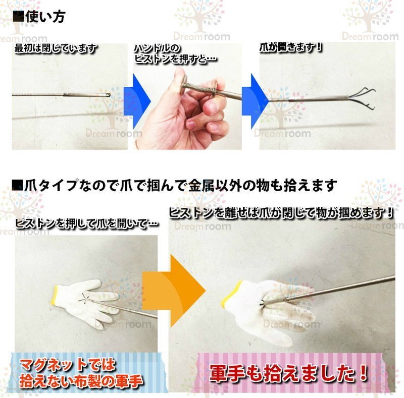 詰まりを撃退!【200cm】 ロング ハンドキャッチャー キッチン 流し台 排水溝 トイレ 大掃除 マジックハンド