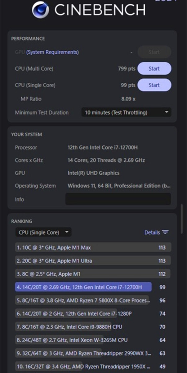 第12世代 Intel Core i7-12700H 14コア/20スレッド 最大 4.70 GHz |