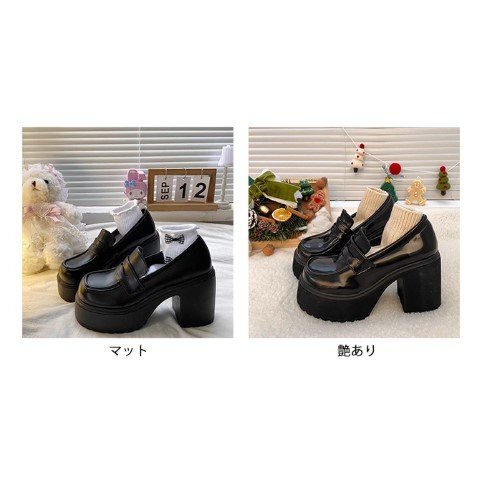 レディース パンプス 厚底 黒 ホワイト 美脚 脚長 太ヒール スタイルアップ エナメル調 艶感 24.0cm(38) マット