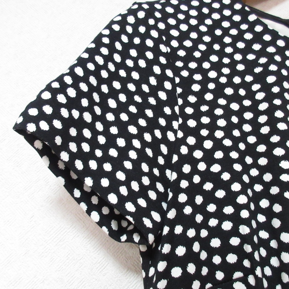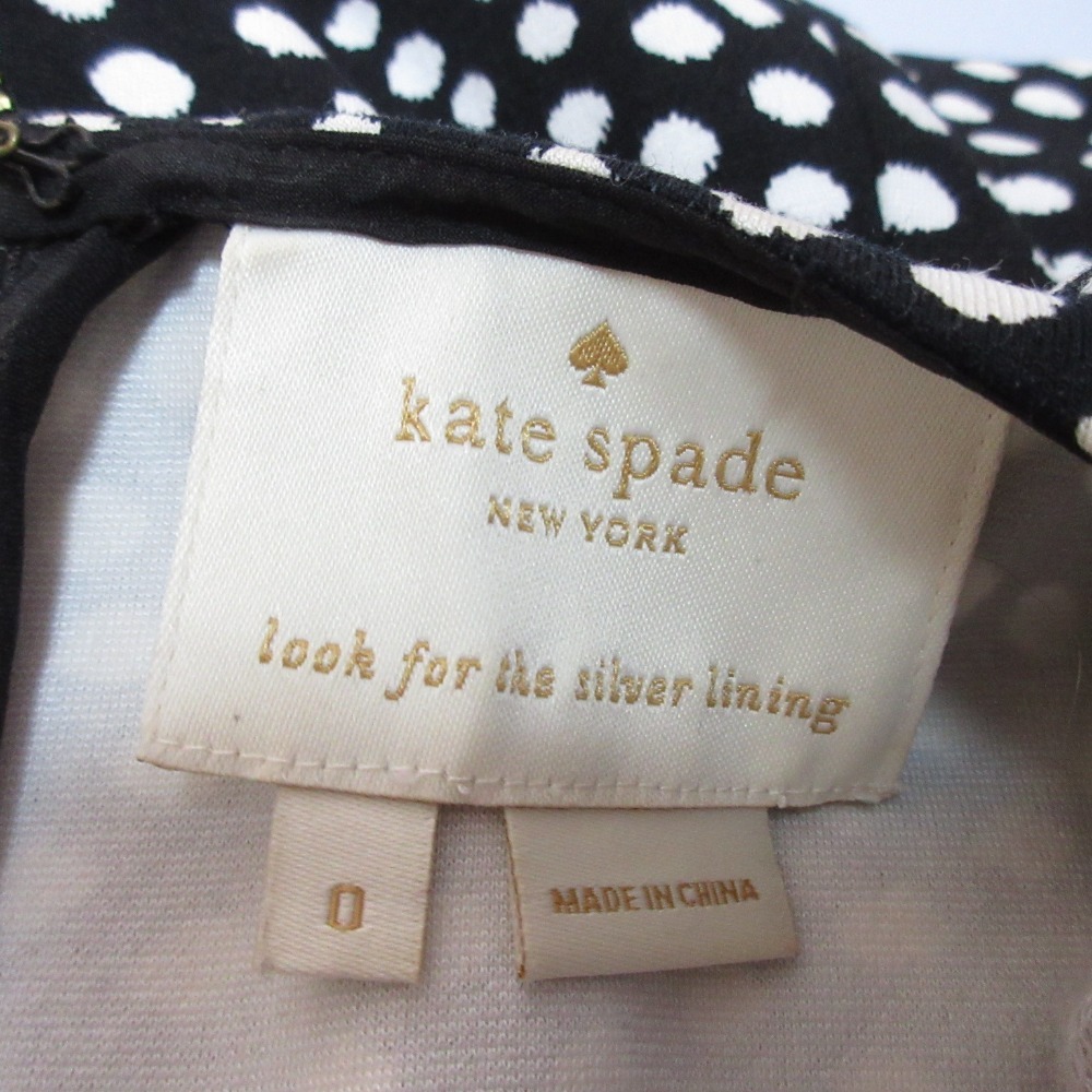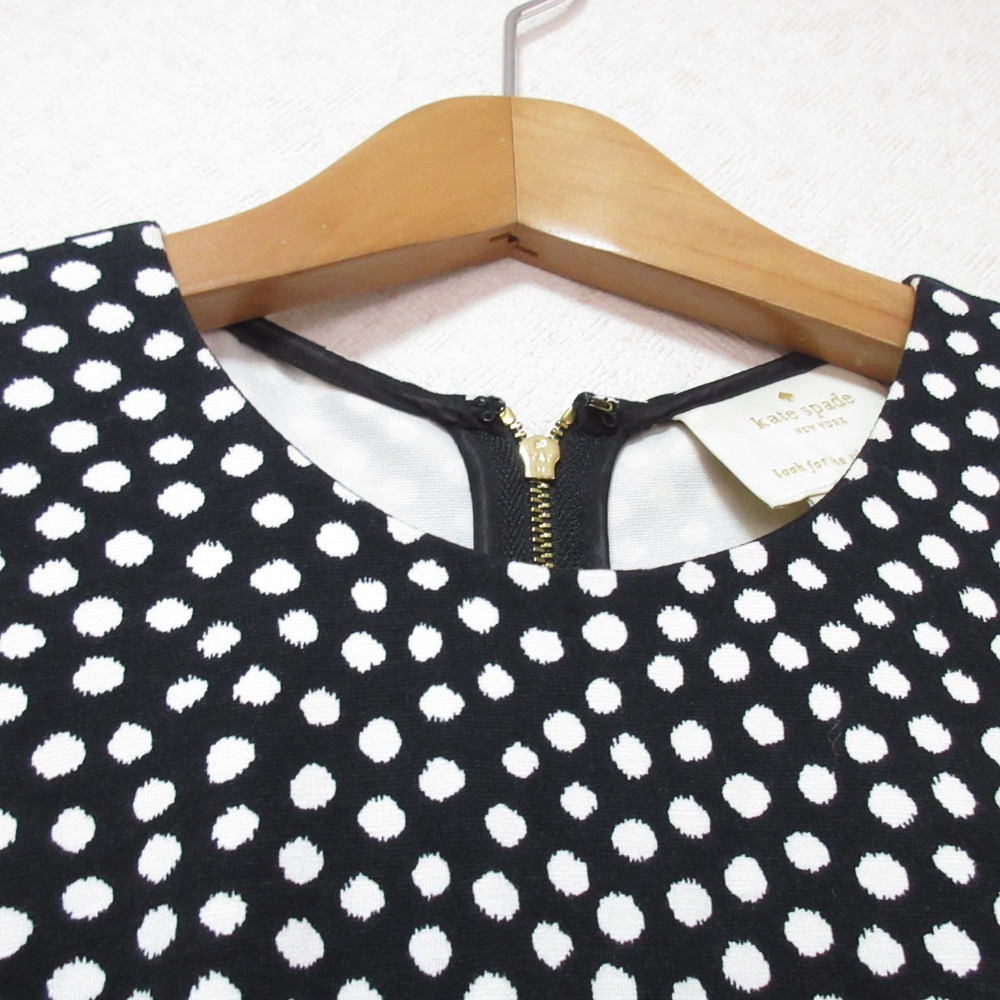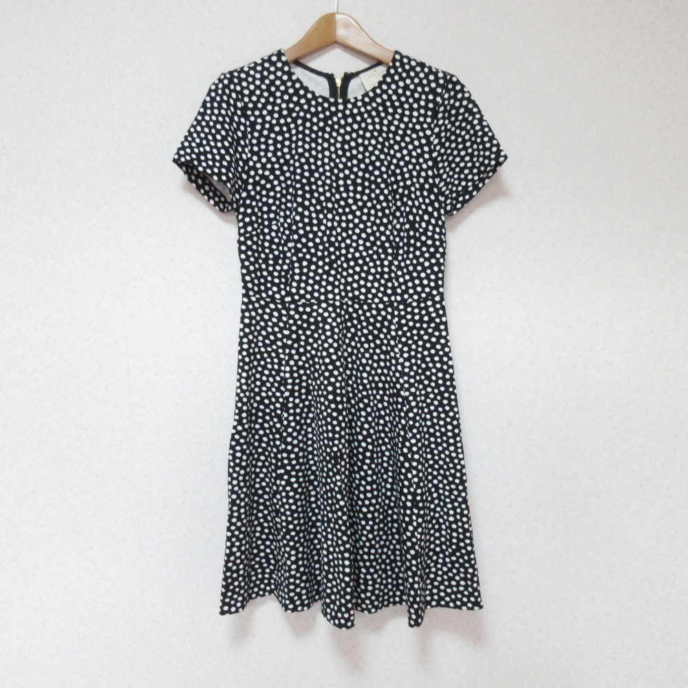 美品 Kate Spade ケイトスペード ドット柄 半袖 ひざ丈 フレアワンピース 0 ブラック
