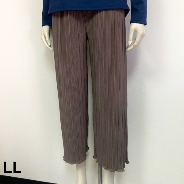即決新品 レディース プリーツ パンツ ゆったり モカ LL 送料無料