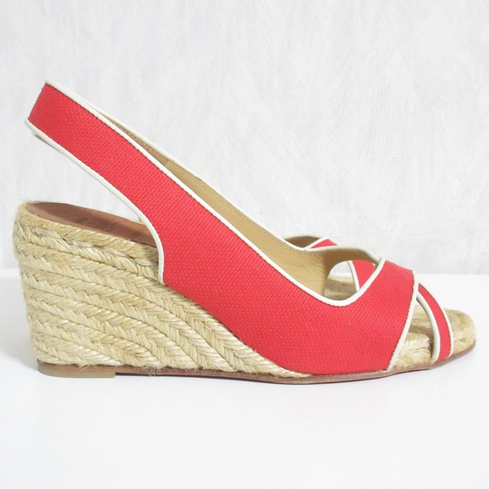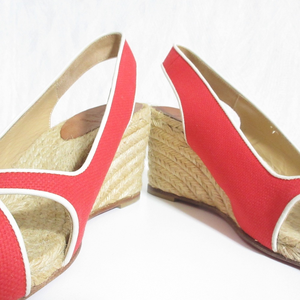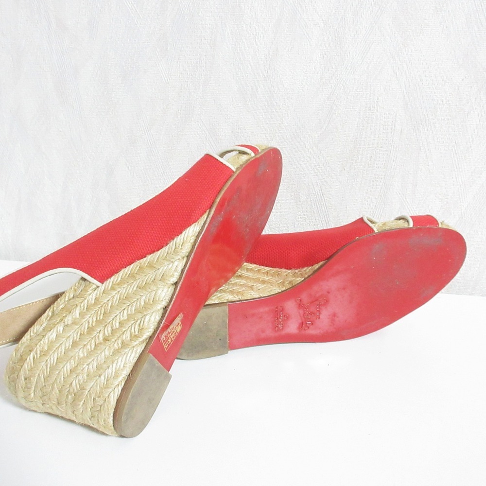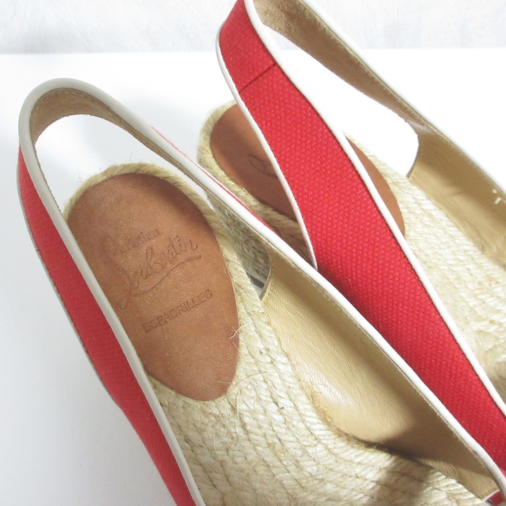 美品 Christian Louboutin クリスチャンルブタン エスパドリーユ ウエッジソールサンダル 36 レッド