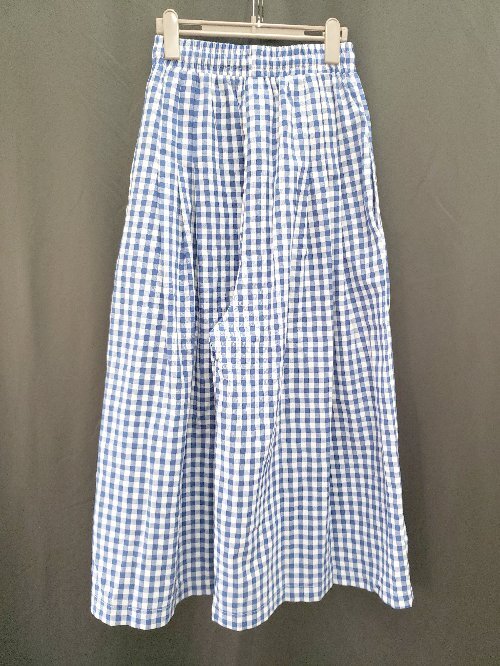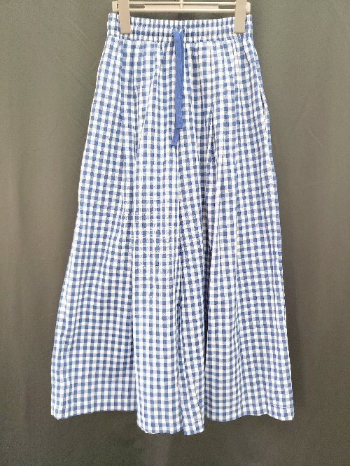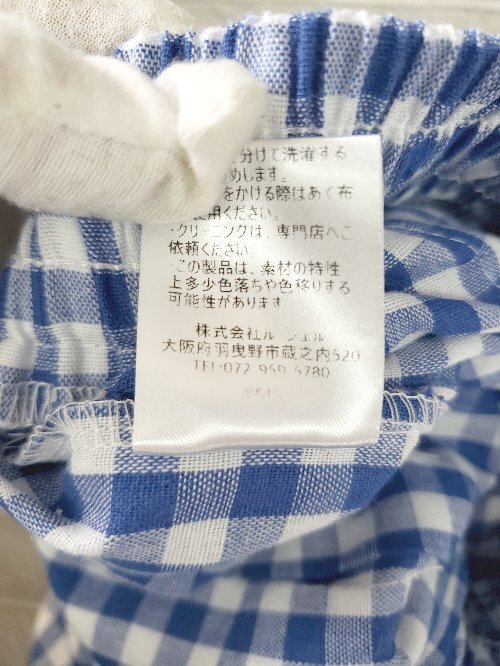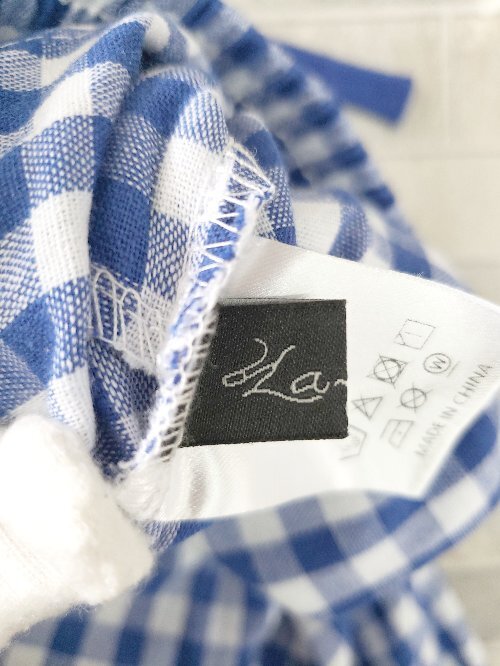 ◇ ⊂ La-gemme ラジェム チェック柄 タック ワイド パンツ ブルー ホワイト系 レディース E
