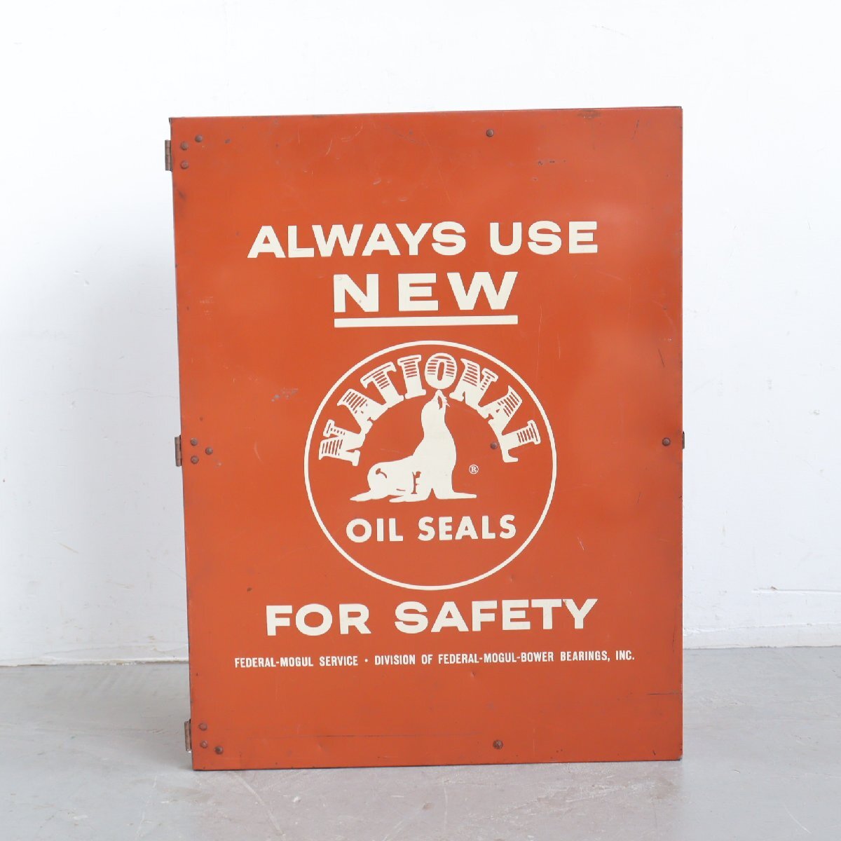 商品説明 explanation | 1960年代の「National Oil Seals」のディスプレイキャビネットです。 車のシャフトシールの収納やショップでのディスプレイに使用されていたモノで、壁掛けも可能です。 車関係のキャビネットはアメリカでも高い人気があります。 色合いも良く、経年によるヤレ感のある風合いがヴィンテージらしさ満載です。 ご自宅、ガレージ、店舗什器などの小物収納にいかがでしょうか。 |