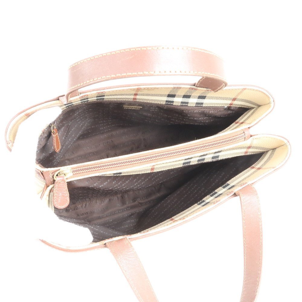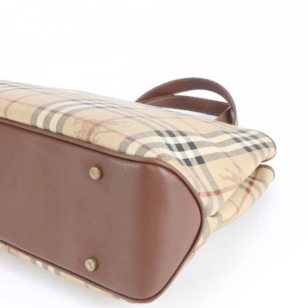 1円■極美品■バーバリー■ノバ チェック シャドーホース レザー トート バッグ 肩掛け ショルダー ハンド ブラウン レディース ERE CV12-6