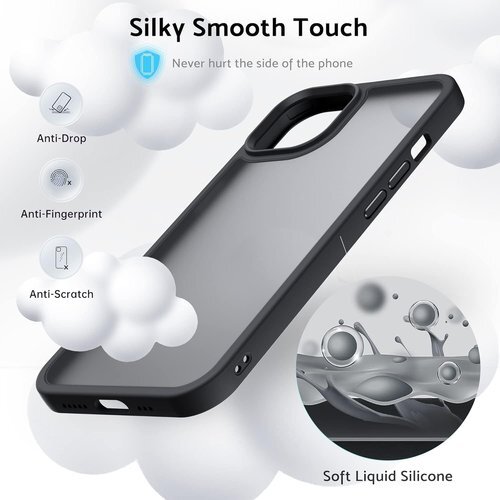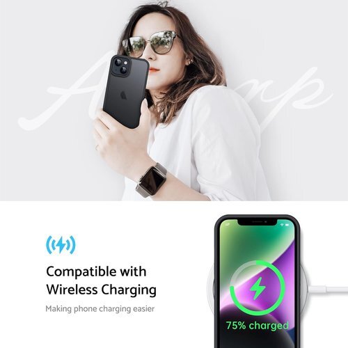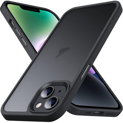 Anqrp iPhone 14 Plus 用 ケース 半透明 耐衝撃 滑り止め 米軍MIL規格 指紋防止 マットケース ストラップホール付き ワイヤレス充電対応 スマホケース アイフォン 14 Plus カバー 6.7インチ ブラック 983