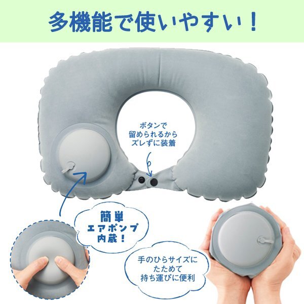 【2個セット!】携帯枕 ネックピロー 飛行機 車 旅行 エアー 首枕 手動ポンプ付き クッション 防災 送料無料- 60N◇ ネックピローMT:2個