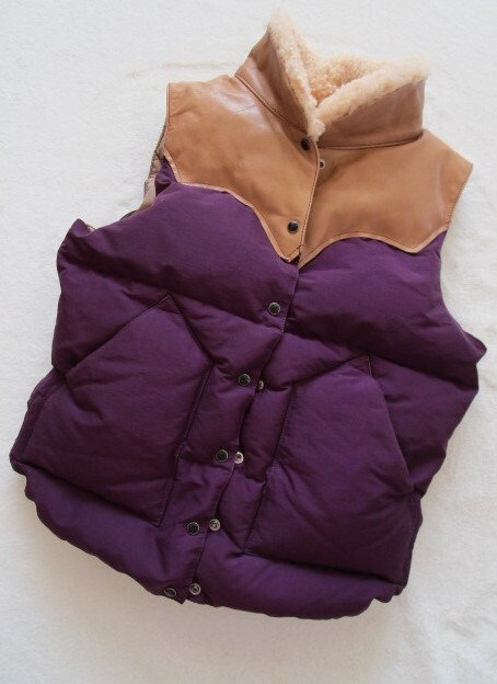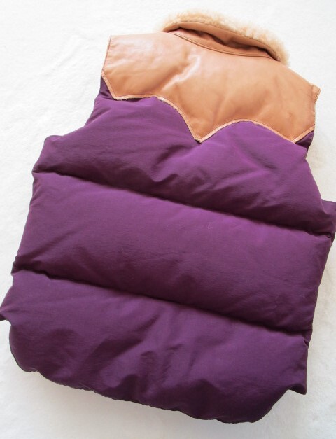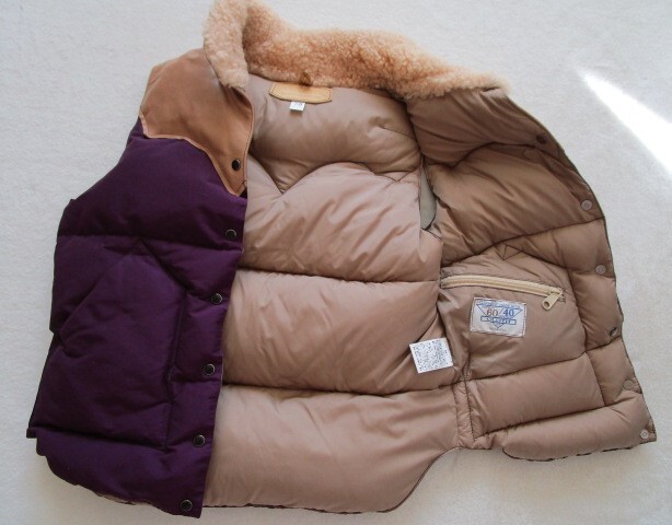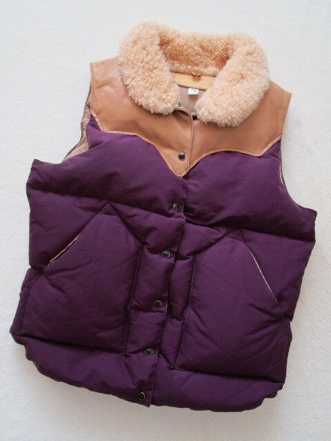 ロッキーマウンテンフェザーベッド ダウンベスト 7/8 小さめ ダウン90% レザー 牛革 ムートン パープル Beauty&Youth 別注品 牛革