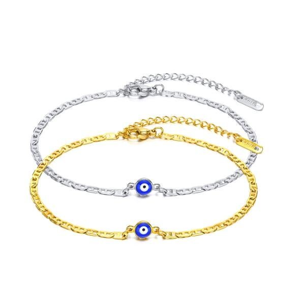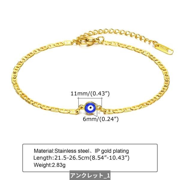 アンクレット ブレスレット トルコ シチメンチョウ 青 ブルー ステンレス チェーン 眼 レディース
