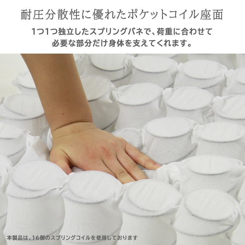 座面には、ヘタリにくく、耐圧分散性に優れたポケットコイルを使用しています。