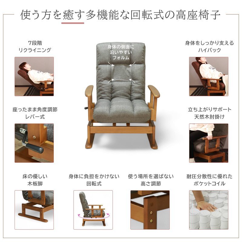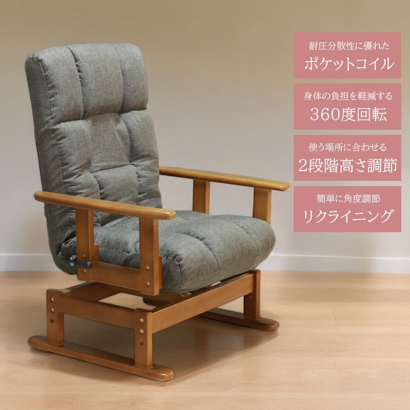 多機能で、座り心地も満足な肘掛け付きの回転高座椅子
