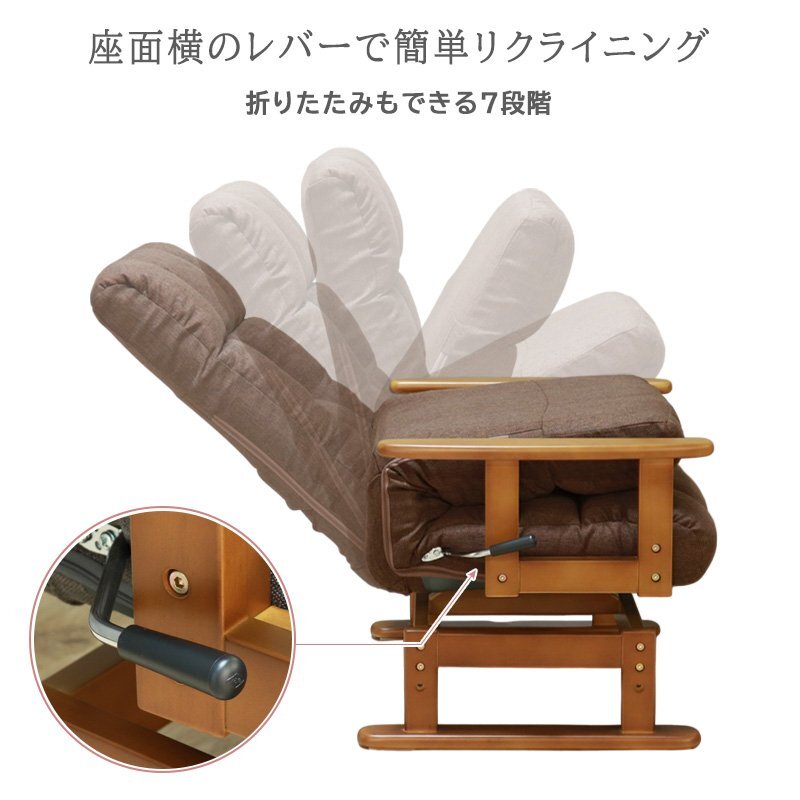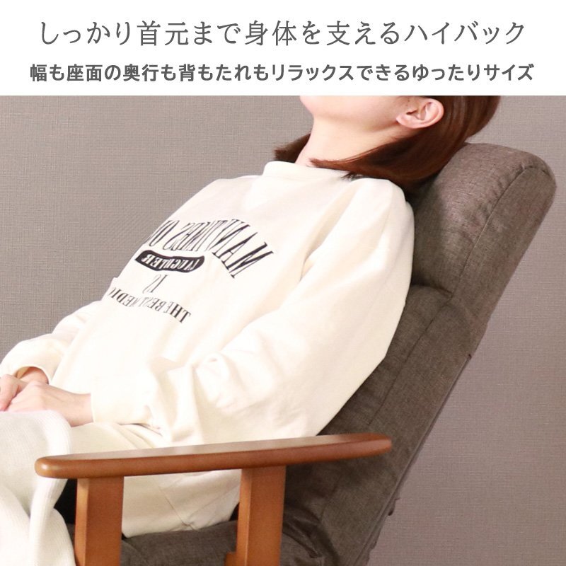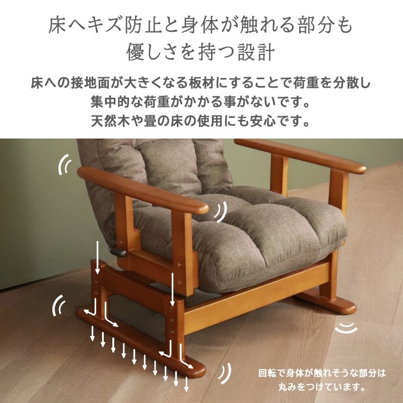 天然木の肘掛け付きで、肌ざわりの良さや温もりと同時に、立ち上がりやすいサポート効果もあります。
