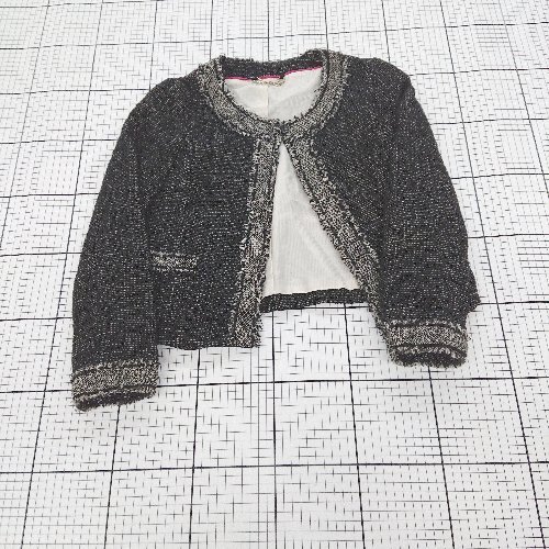 ◇ ⊆ ROPE' ロペ ツイード調 長袖 ノーカラー ジャケット サイズ7 ブラック系 レディース E