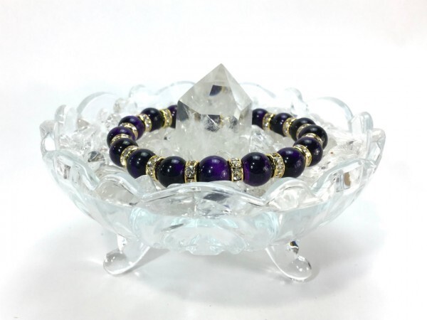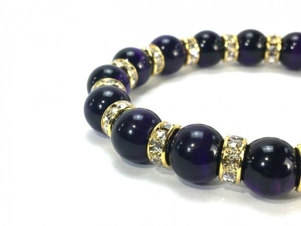 こちらは、10mm玉のパープルタイガーアイを使用したパワーストーンブレスレットです。間にはロンデルを挟み高級感あるブレスレットに仕上げています。石大きさは腕にも馴染みやすいように10mm玉を使用して、サイズは内径約18cmです。(サイズ調節も無料で承っています。サイズ変更の場合は落札後、取引ナビにてご一報くださいませ。) 数に限りがございますので気になる方はお早めにどうぞ。