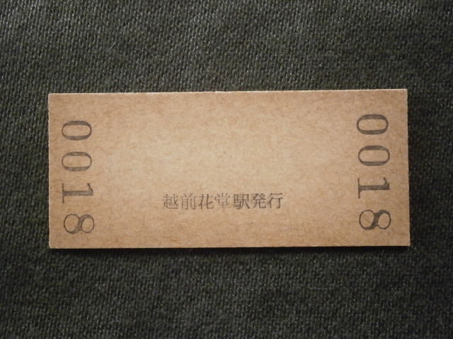 国鉄 越前花堂駅発行の入場券です。