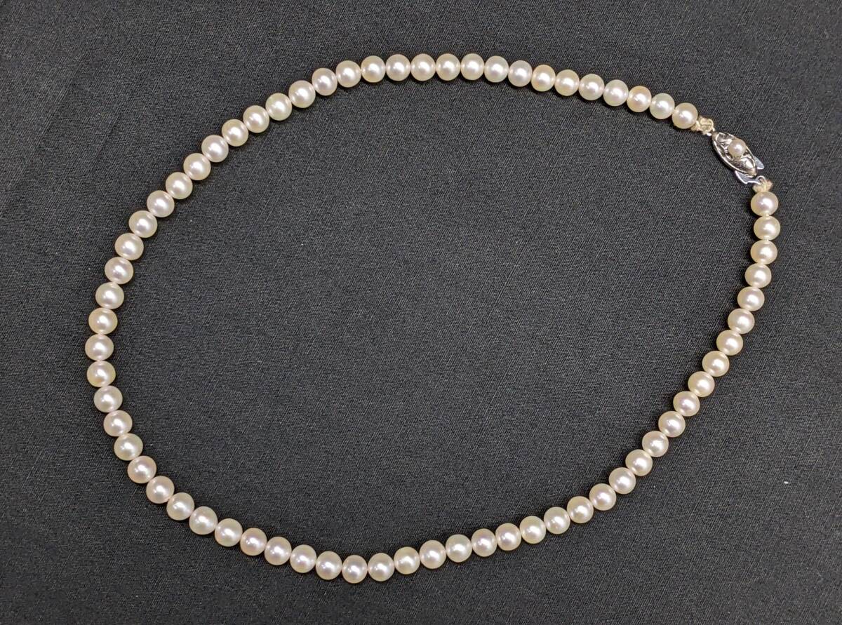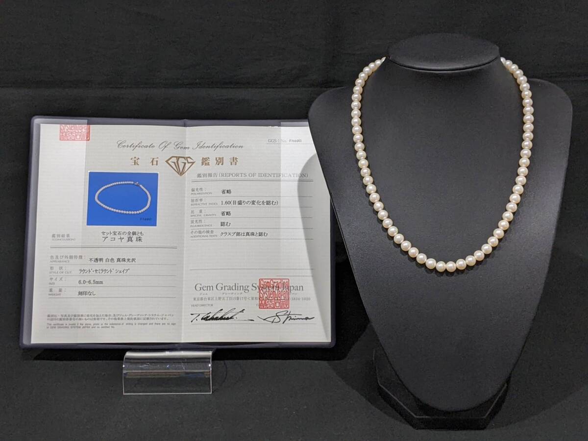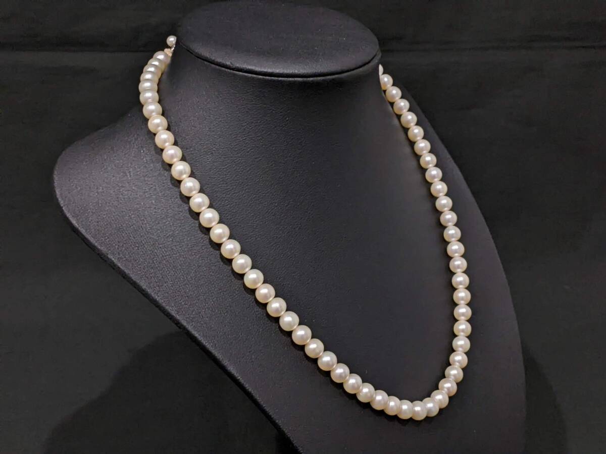 | 【15322】1円~ SILVER アコヤ真珠 パールネックレス 不透明 白色 真珠光沢 ラウンド セミラウンド 6.0-6.5mm 約43cm 鑑別書付き | |