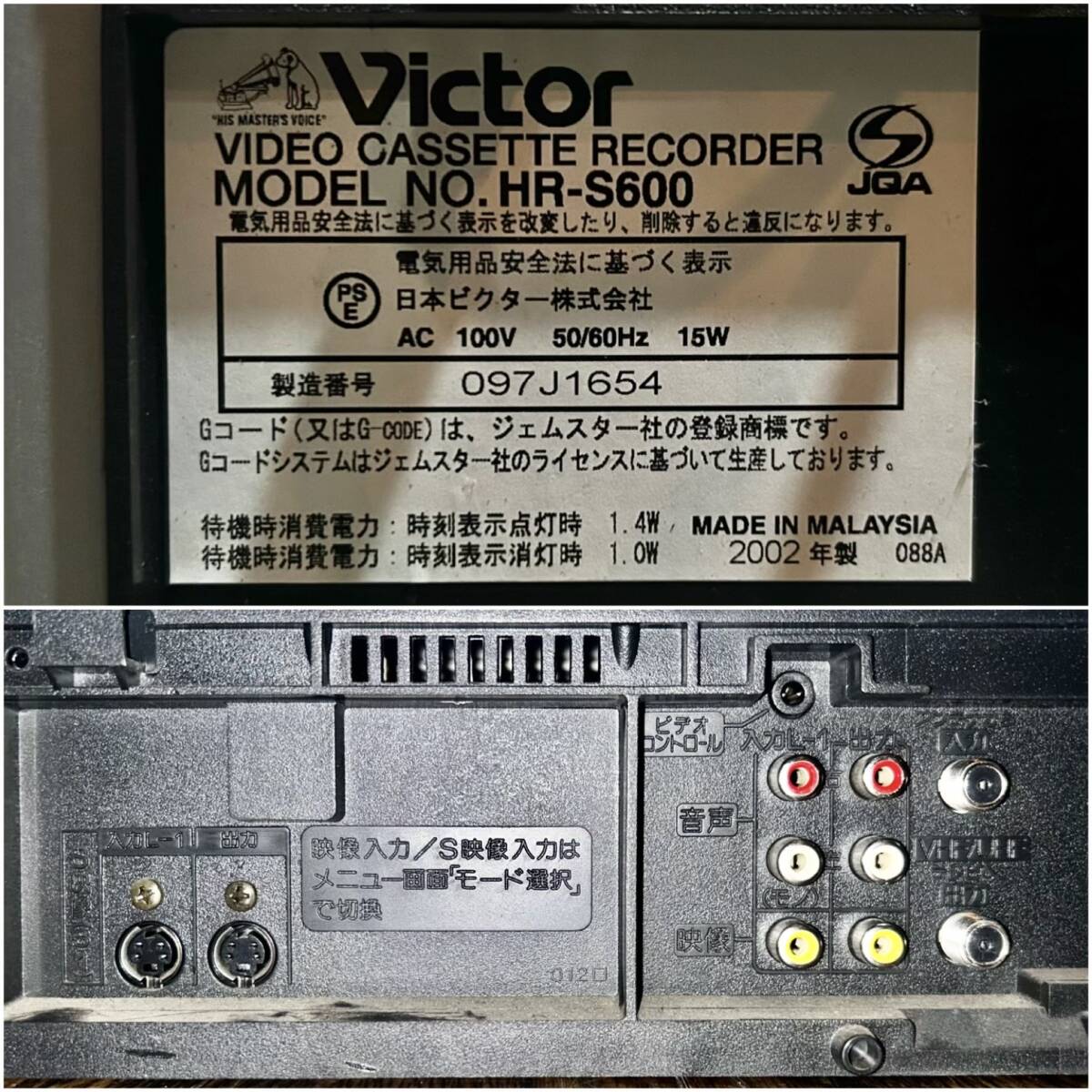 【No.1002】Victor/ビクター S-VHSビデオカセットレコーダー HR-S600 2002年製 動作確認 取説付き リモコンなし 現状品