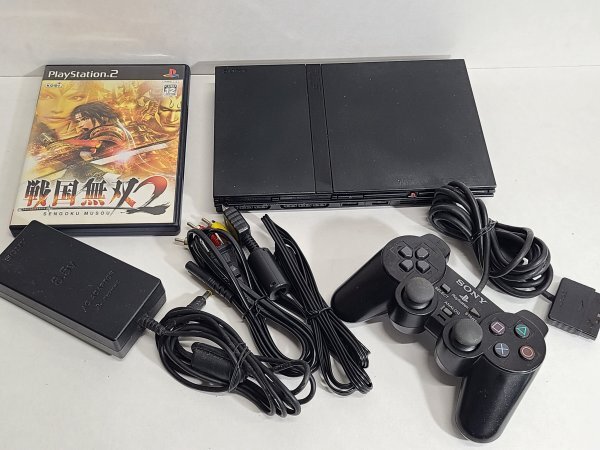 | ☆ PS2 プレイステーション2 SCPH-77000 チャコールブラック 動作品 本体 コントローラー ケーブル 付属 戦国無双 PlayStation2 SONY D35 | ||