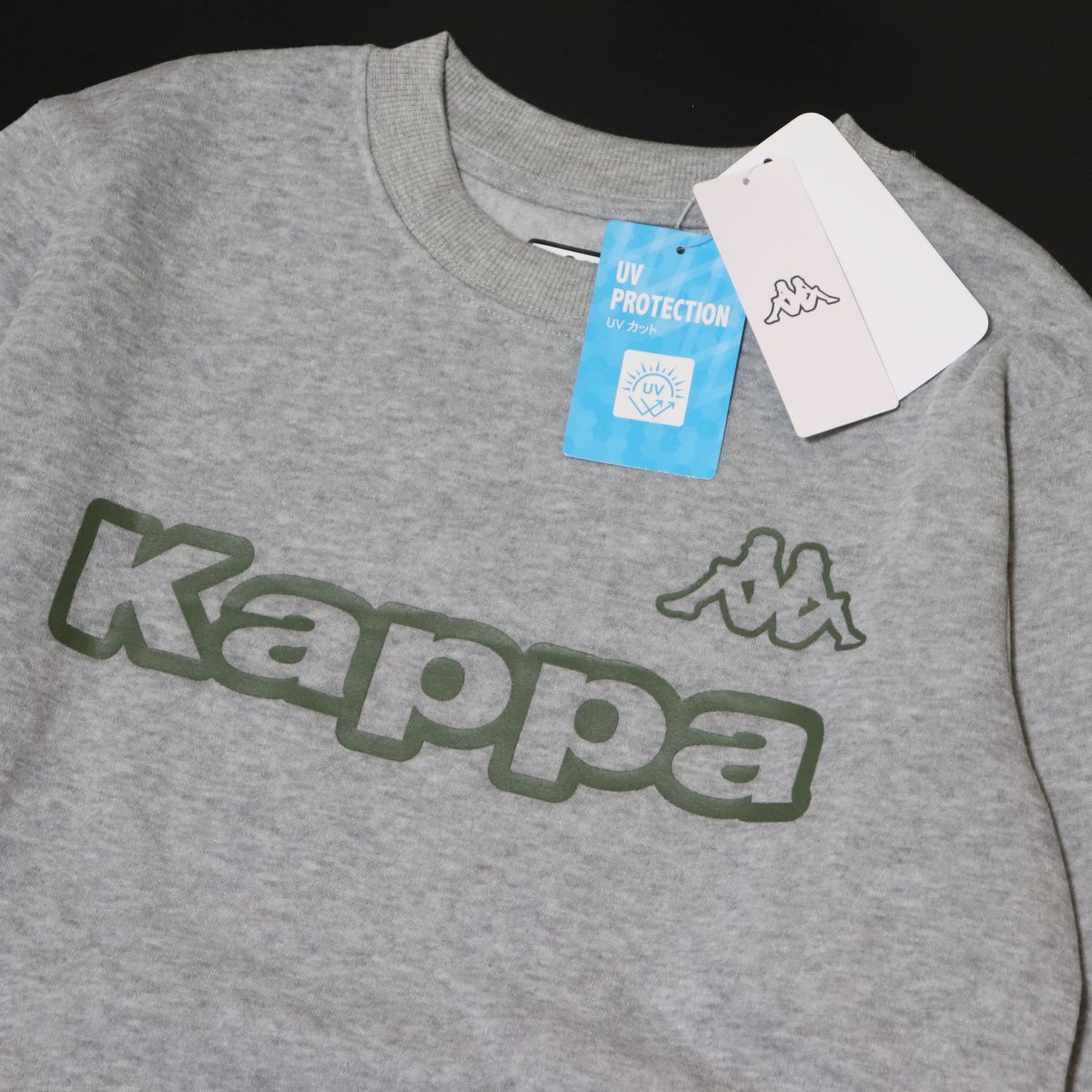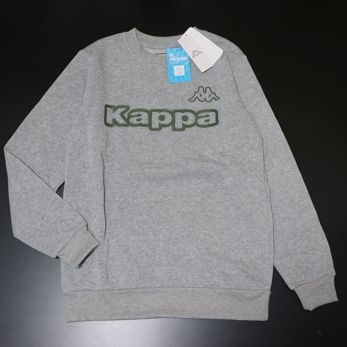 ★カッパ KAPPA メンズ UVカット 裏起毛 保温 ビッグロゴ スウェット トレーナー シャツ 灰 Mサイズ [245345-MGY-M] 一 三 壱★QWER★