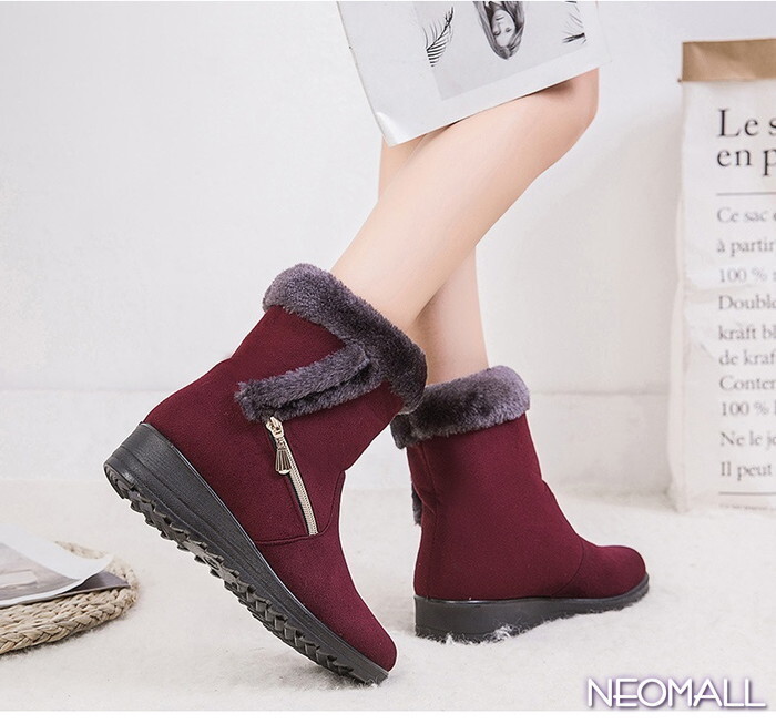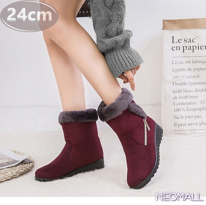 レディース スノーシューズ 【956】 レッド 24.0cm ムートンブーツ スニーカー ウィンターブーツ 裏起毛 防水 防寒 防滑 冬用靴 綿靴