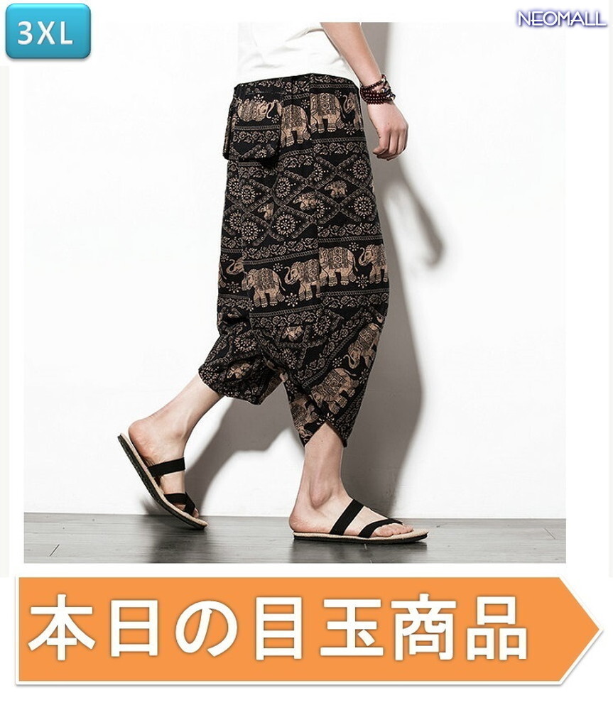 今日の目玉☆メンズ サルエルパンツ カラー04 3XL カジュアル ヒップホップ 7分丈 スウェット ポケット付 オールシーズン【341】
