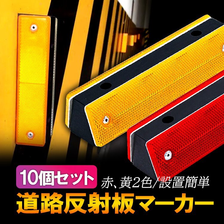 ◆道路反射板マーカー10個セット 高輝度 マーカー 地下駐車場 ガードレール 両面反射板 セーフレーン 視線誘導 リフレクター 夜間の視認性が向上 黄色 10個セット RRMK10S