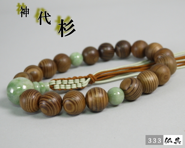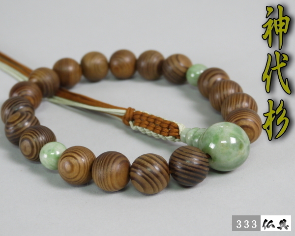 333仏具★数珠 天然 神代杉 独山玉仕立 18玉片手