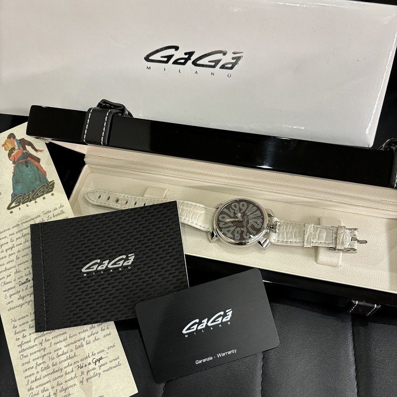 GaGa MILANO ガガミラノ マヌアーレ40 マニュアーレ 5020 QZ クォーツ シルバー グレー ホワイト カラー 腕時計 箱 付きです!!