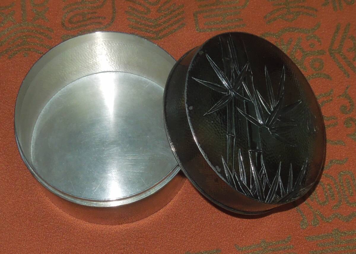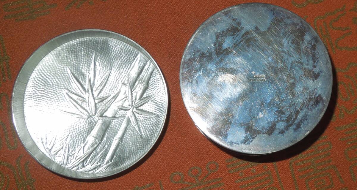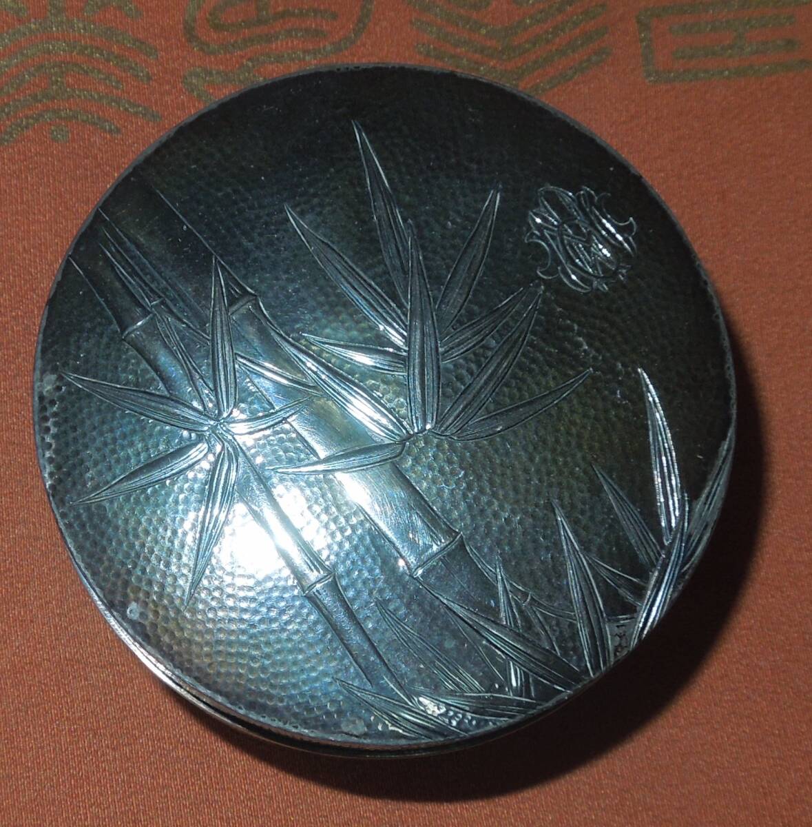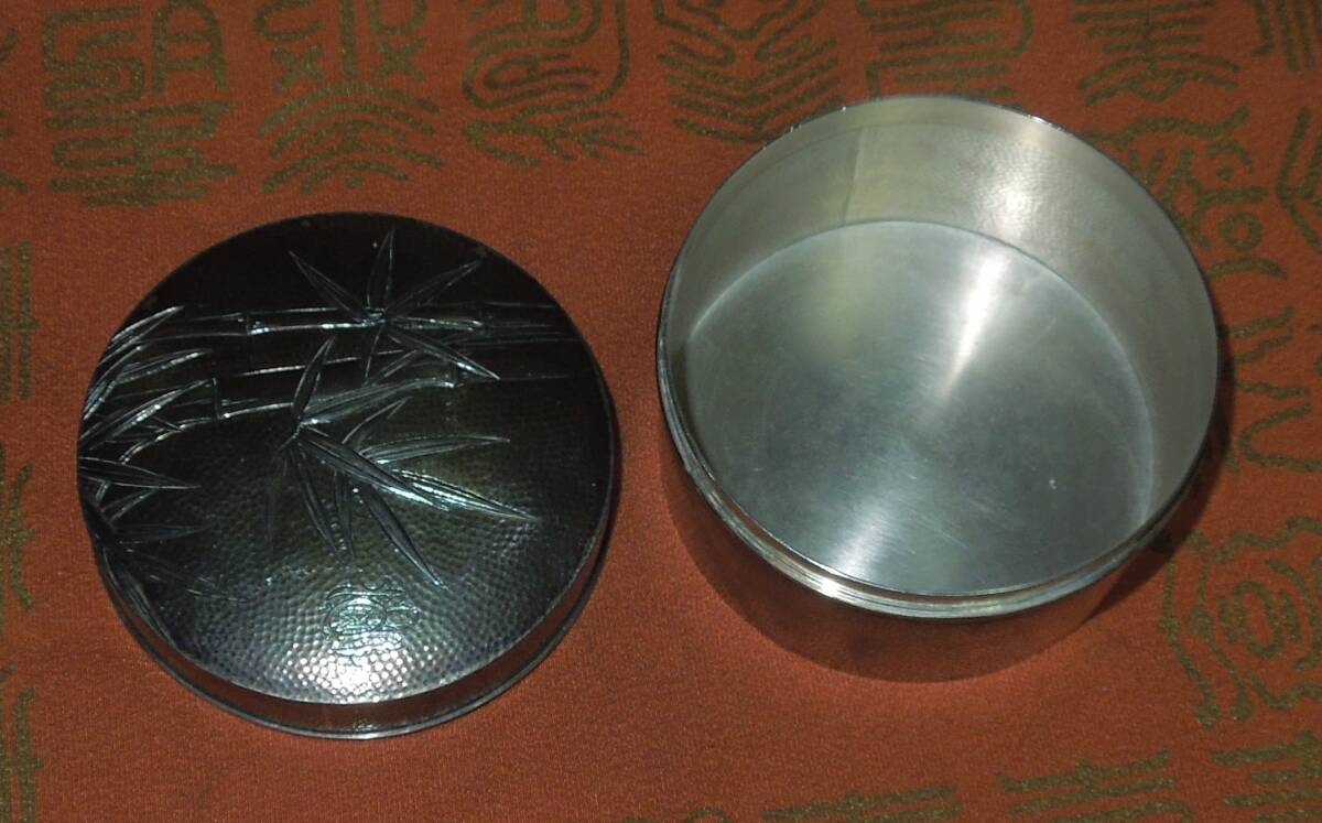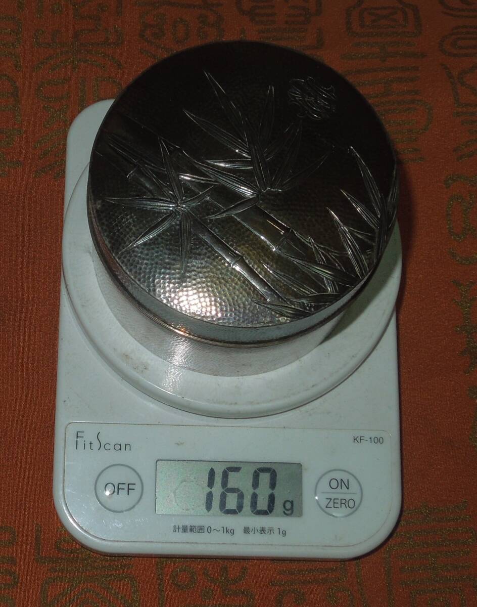 煎茶道具   茶入 茶筒 香合 純銀 sterling刻印 竹文   径:約8.8cm