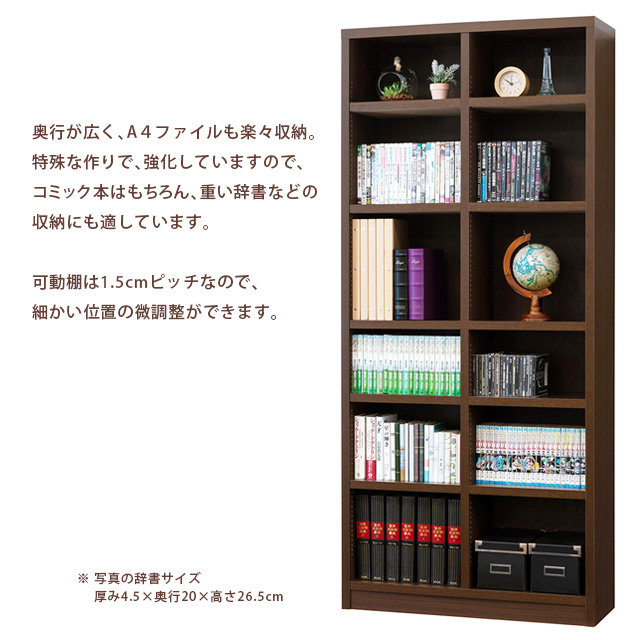 ★奥行が広く、A4ファイルも楽々収納できます。コミック本も大量に収納