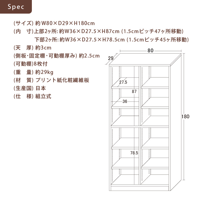 総サイズ:幅800×奥290×高さ1800mm(組立式)