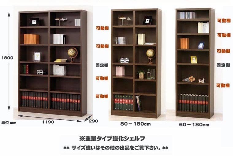 必見!<棚板は30kg耐荷重>重量タイプ強化仕様の書斎本棚80-180cm_oh