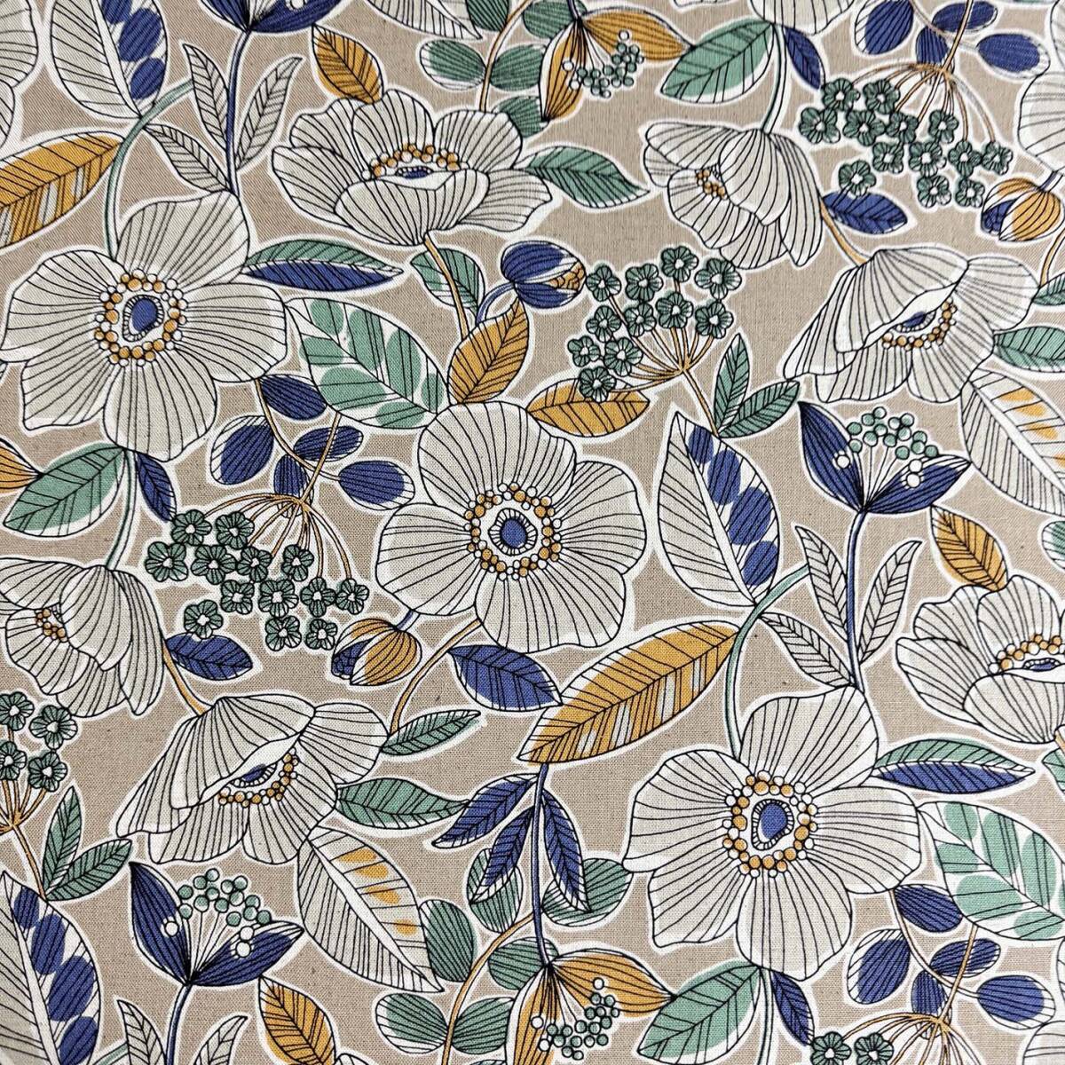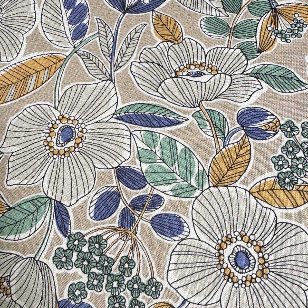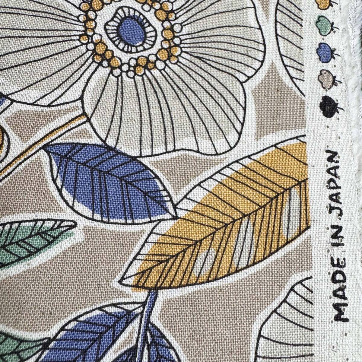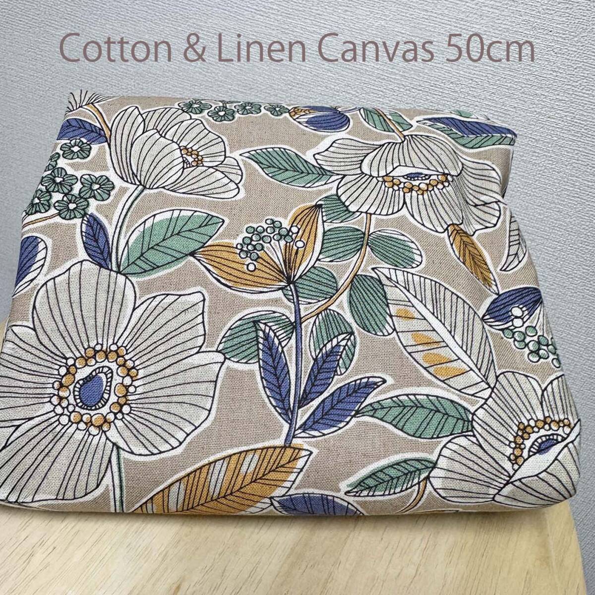 レトロ北欧調フラワー柄★綿麻キャンバス生地50cフォークロアテイスト★リーフ花柄