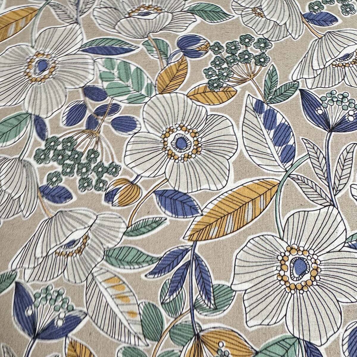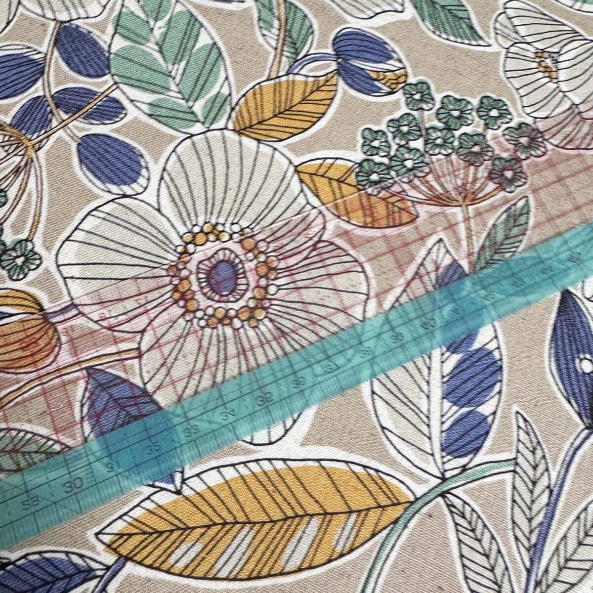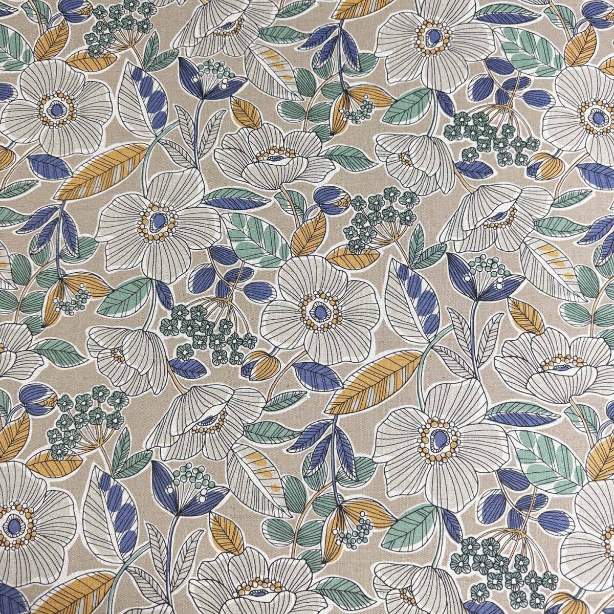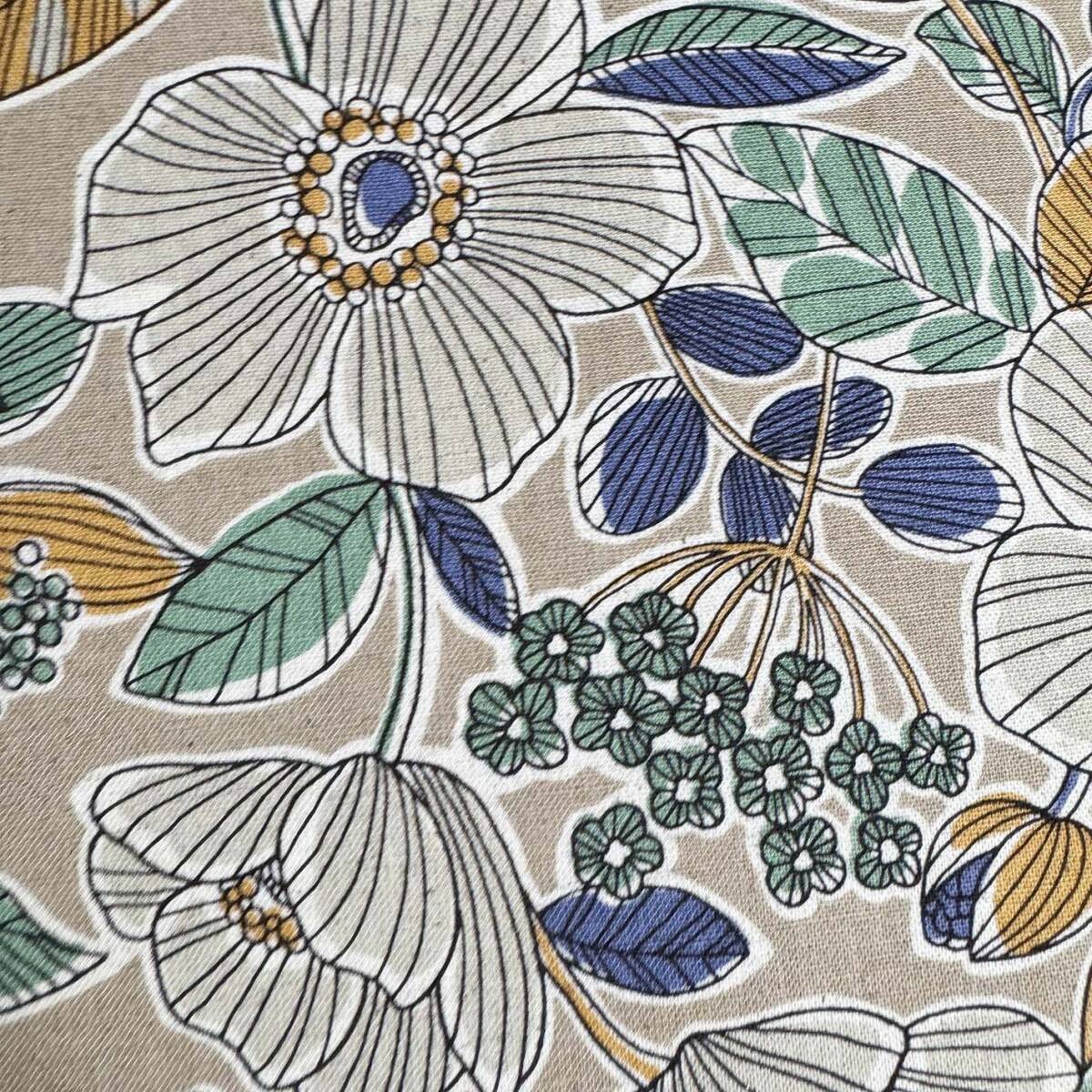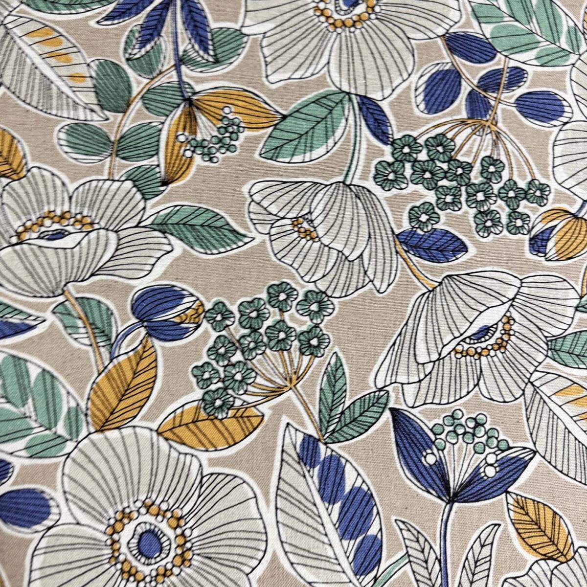 レトロ北欧調フラワー柄★綿麻キャンバス生地50cフォークロアテイスト★リーフ花柄