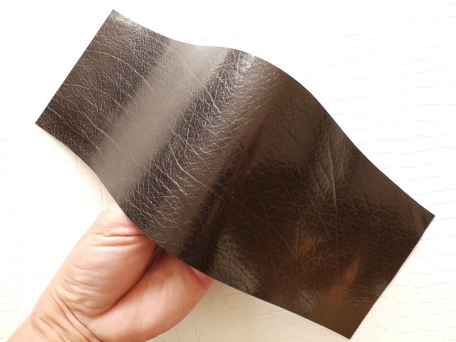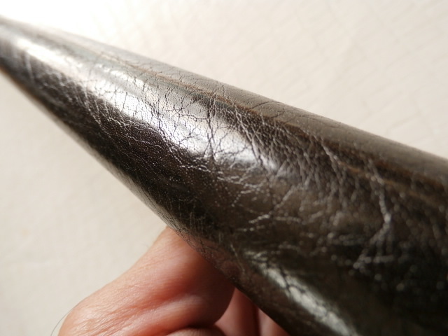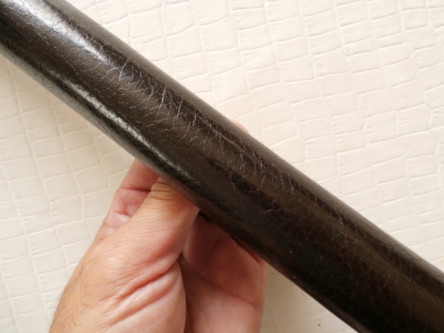 型押しではでない自然なしぼとなります 型押しと違い1枚1枚しぼの入り方が同じではありませんので 写真は出品現物のものです、出品者泣かせの革です( ;∀;) グレージング加工で革の表面を均して艶を出しています 深みのある濃いブラウンですが、写真で再現するのが難しいカラーです 上手く写真が撮れていません、、現物は高級感のある革ですよ(*'ω'*) スルスルでクッと手にかかるようでもあります 【商品詳細】 革の種類 : 水牛、バッファロー 模様 : ナチュラルシュリンク 柔らかさ : 普通 柔1-2-3-4-⑤-6-7-8-9-10硬 握り心地 : 温かい、本革ならでは、クッと手にかかる サイズ : 短径 10.5cm 長径 33cm 厚み 約0.5mm~0.6mm前後 ロングサイズ : なし 同時梱包も預かります、お気軽にお申し付けください | ||||