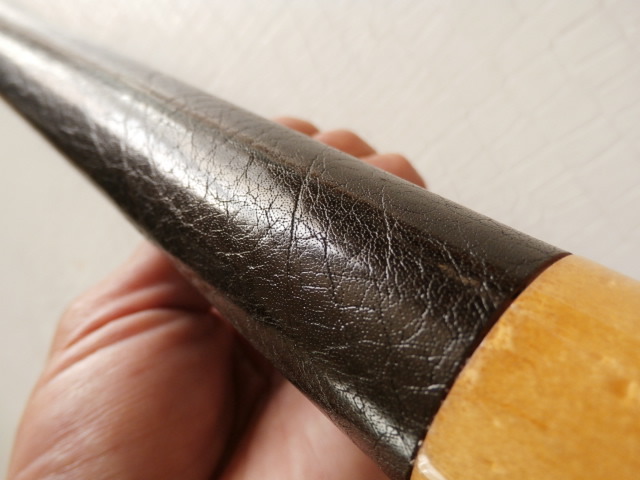 本革製品を販売する上でお知らせいたします、 このグリップに使用されている革は、天然素材の特性を生かし、自然な感 じを損なわない様仕上げられています。 このため、完全な色止め加工を 施しておりませんので、使用に伴う摩れ、手汗などで、色落ち、変退色、 磨耗により、風合いが変わることがありますが、これは、革本来の特性、個性とご理解お願いいたします | ||||