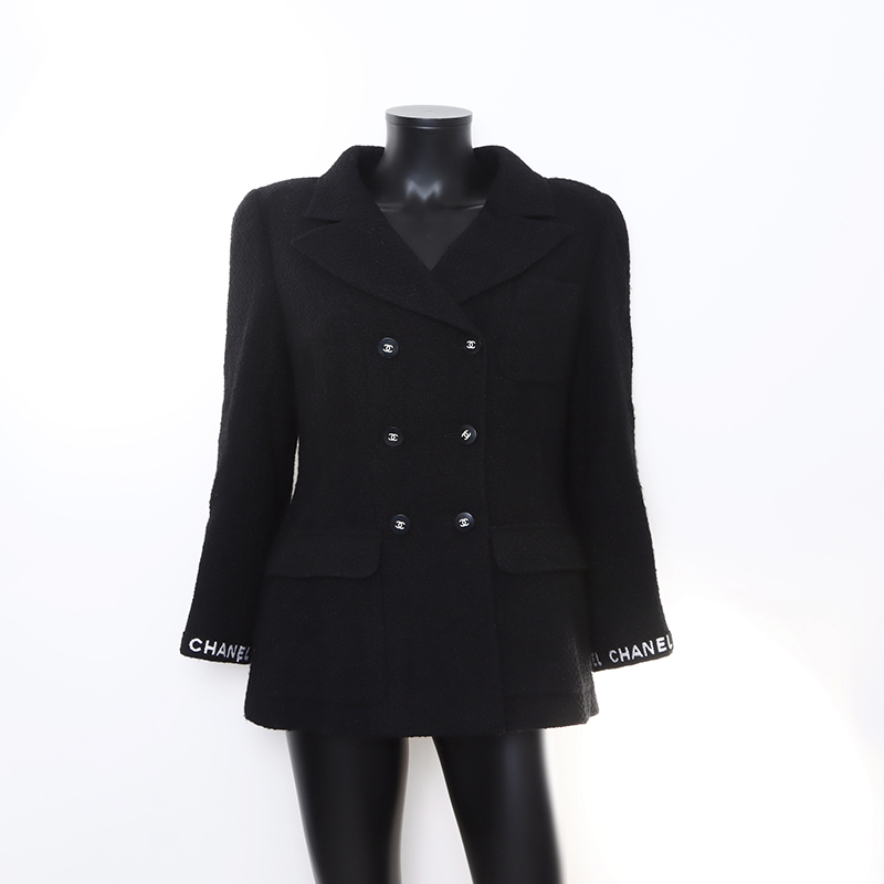 美品 CHANEL Size 46 ツイード P05924V04386 ロゴ  セットアップ ブラック