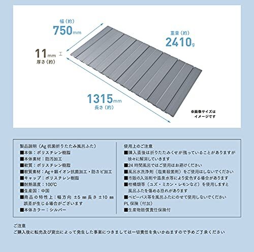 ミエ産業 風呂ふた 折りたたみ式 Ag抗菌 シルバー 750×1315mm L-13_SI