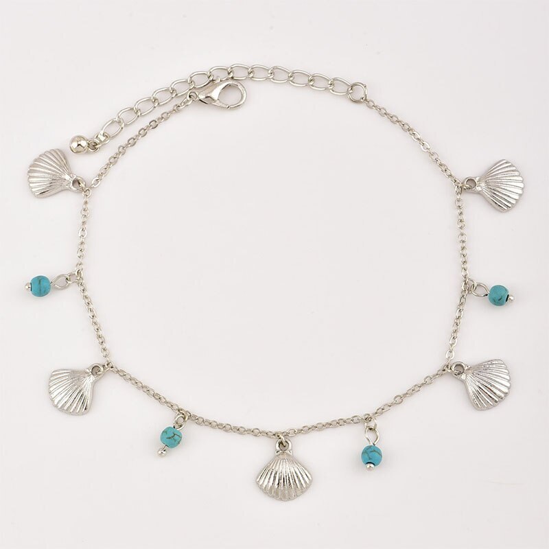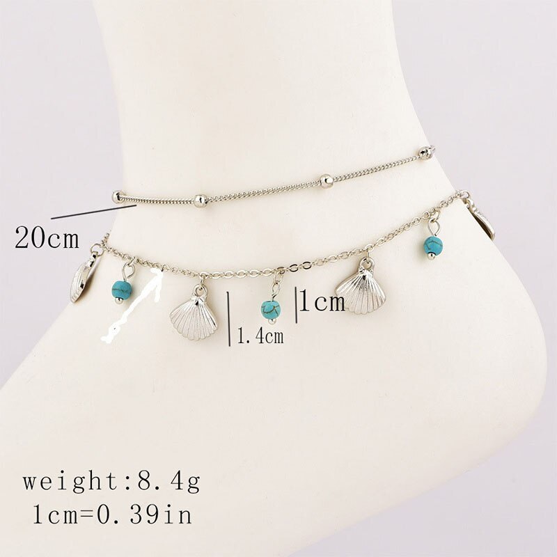 ハワイアンジュエリー★貝殻&ターコイズ色 アンクレット 2本セット★シルバー