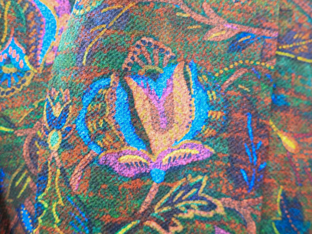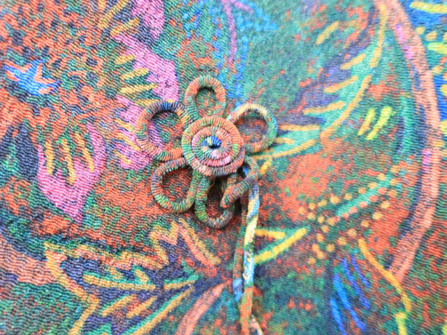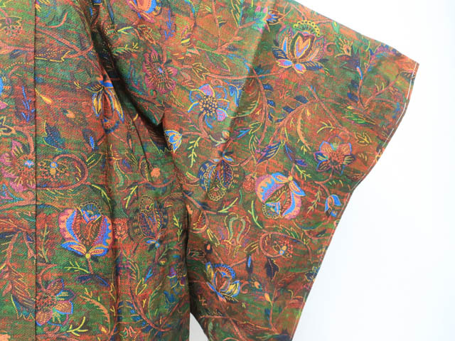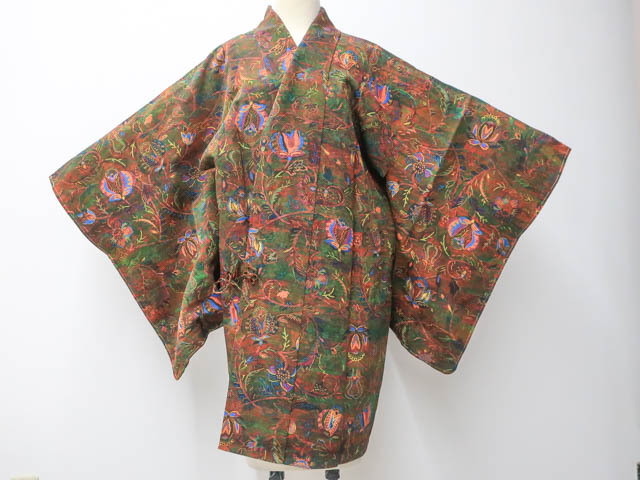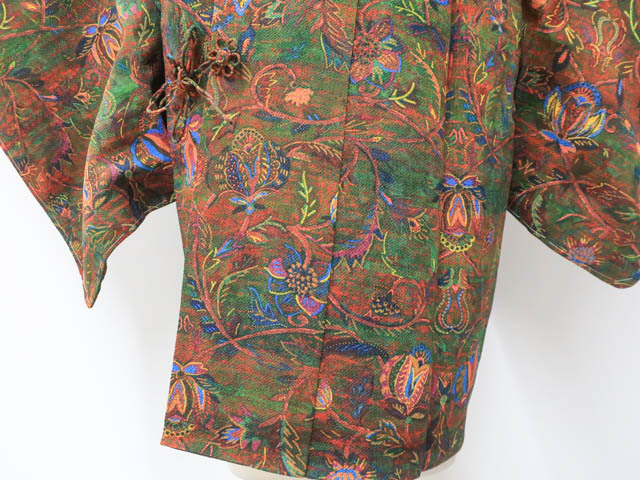 リサイクル商品ではございますが、大変良い状態のお品です。 地色は、赤茶・緑色です。 1枚目の画像が近いお色かと思われます。 素材は正絹です。 |